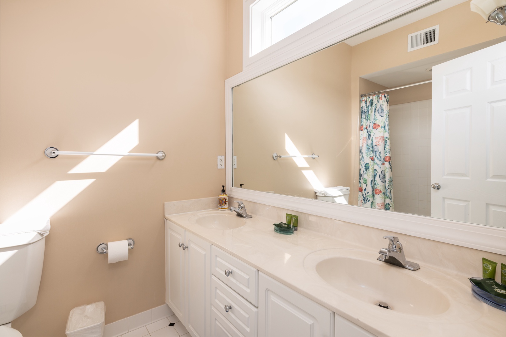 All bathrooms feature contemporary fixtures, and fresh towels and complimentary toiletries are provided.