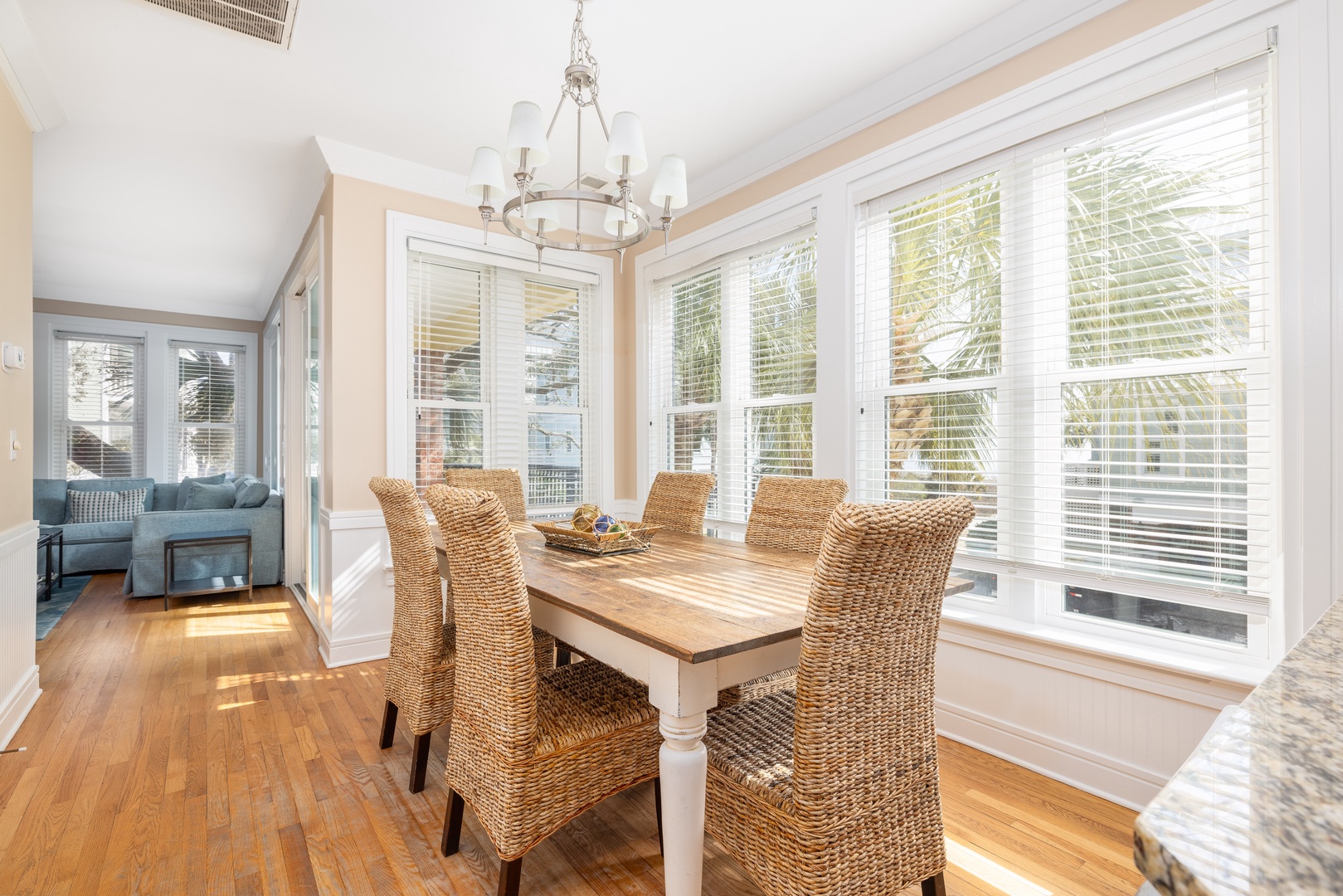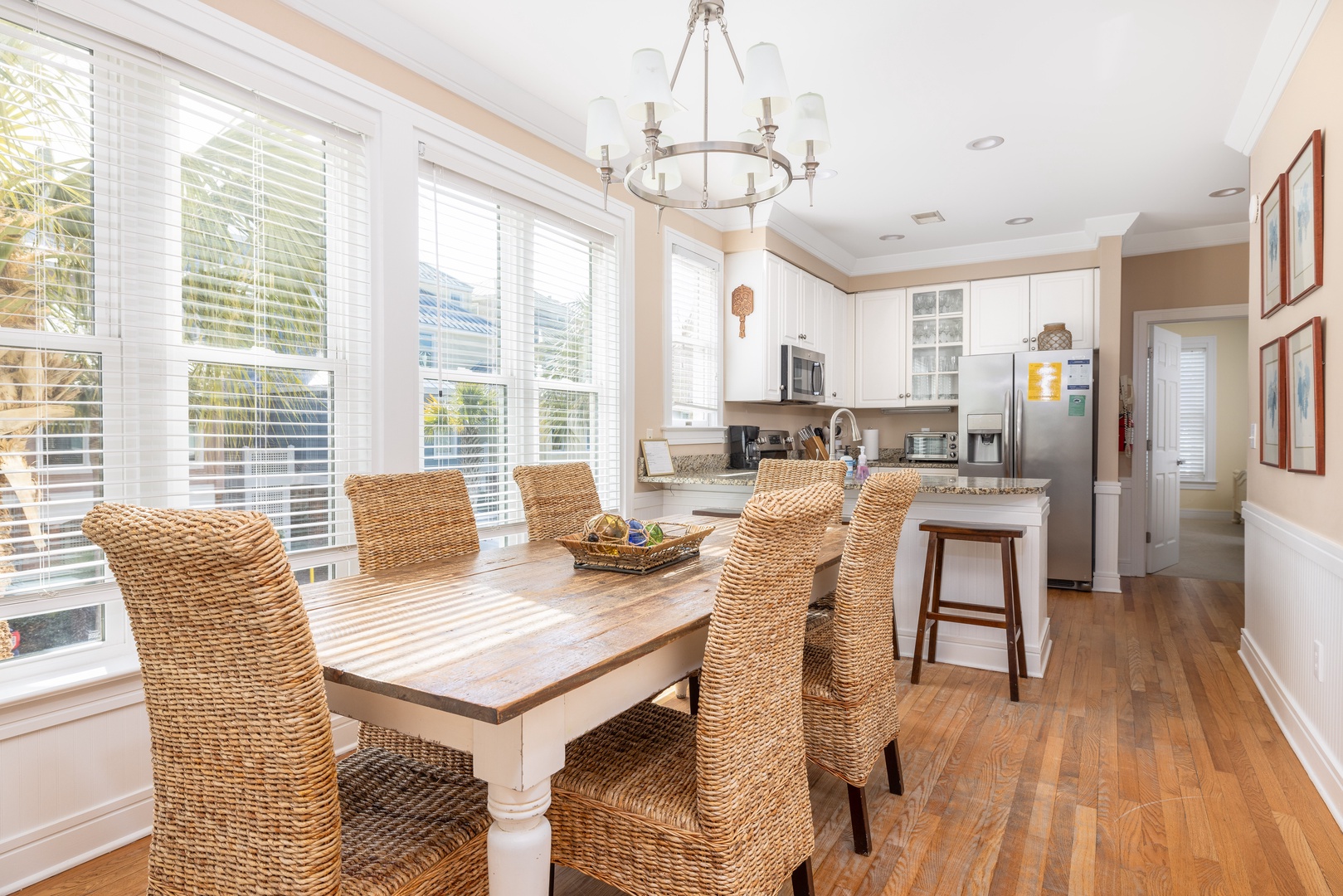 Large dining area that seamlessly flows into the kitchen, perfect for family meals or entertaining guests.