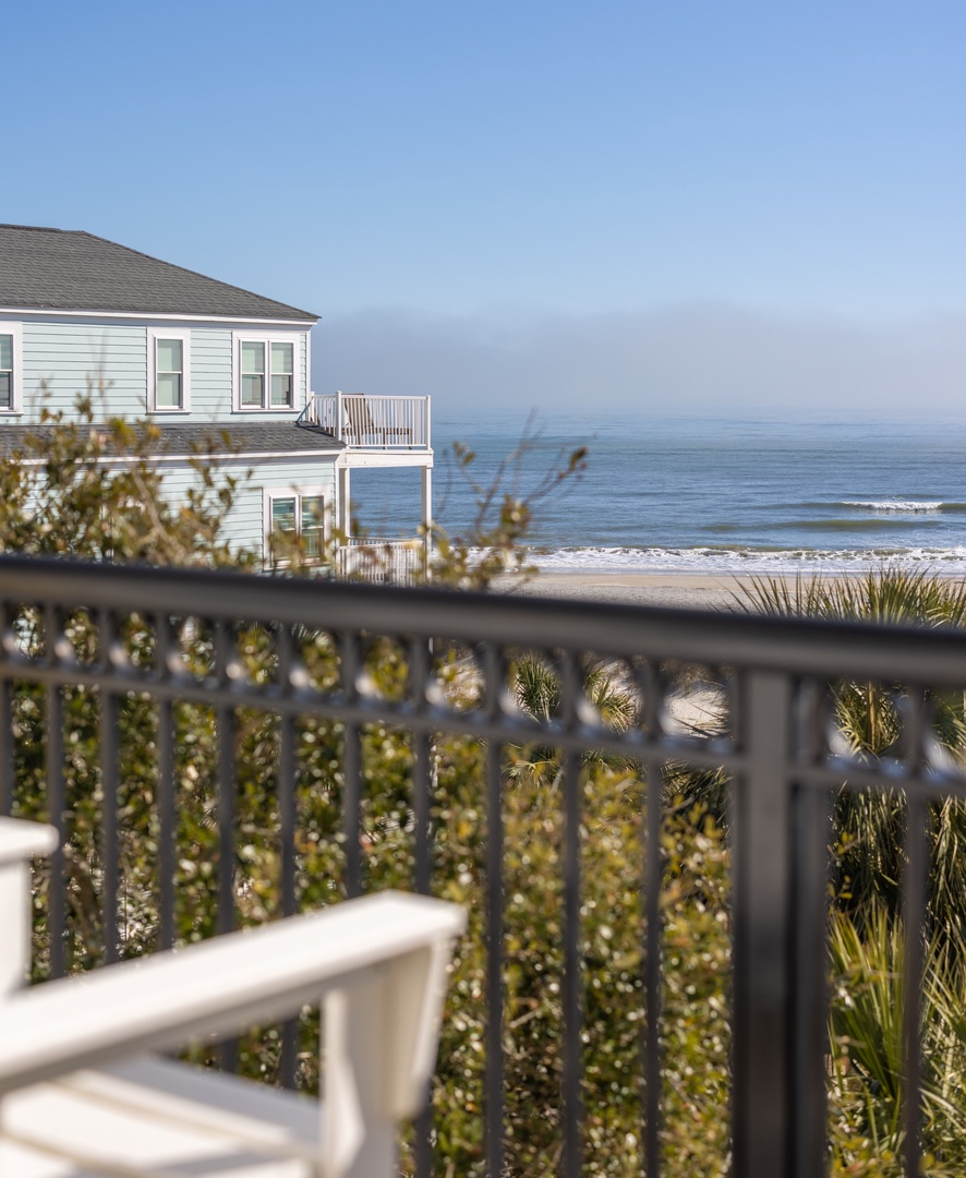 Private balcony with seating off the master bedroom, offering breathtaking views of the Atlantic Ocean.