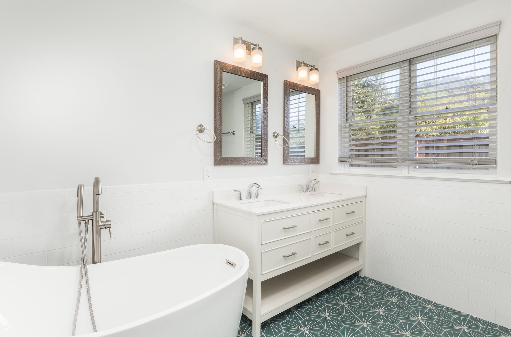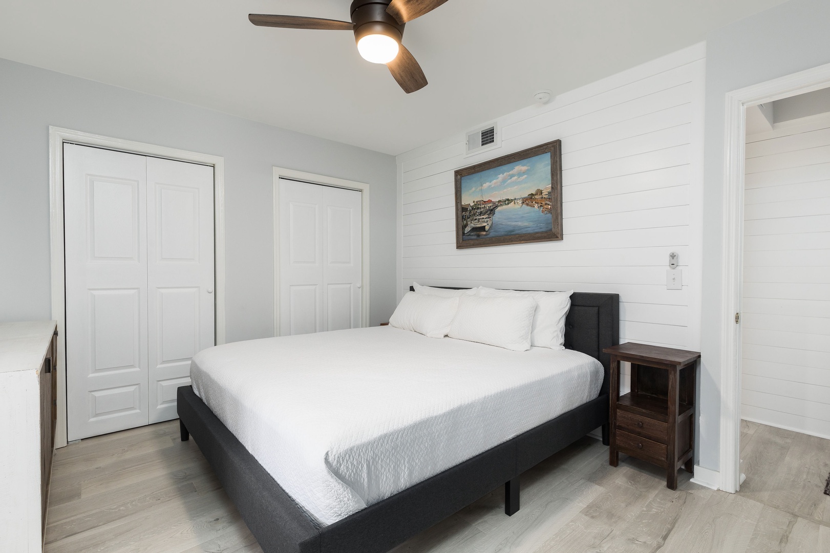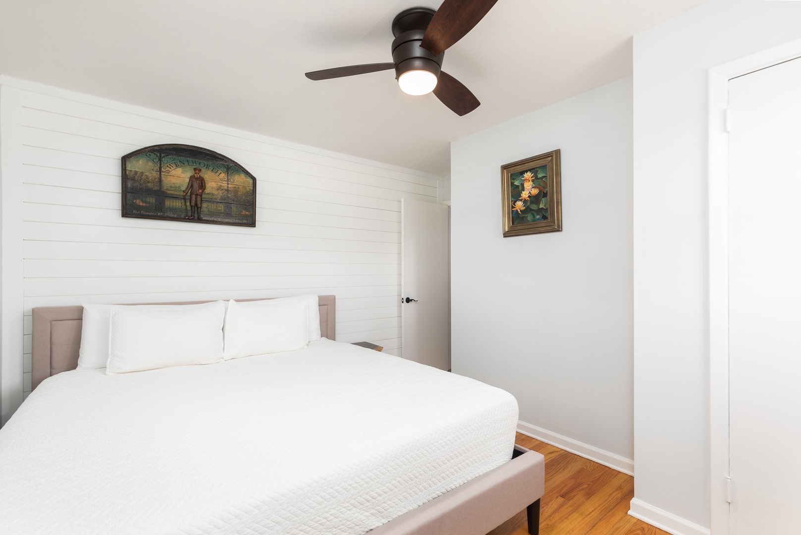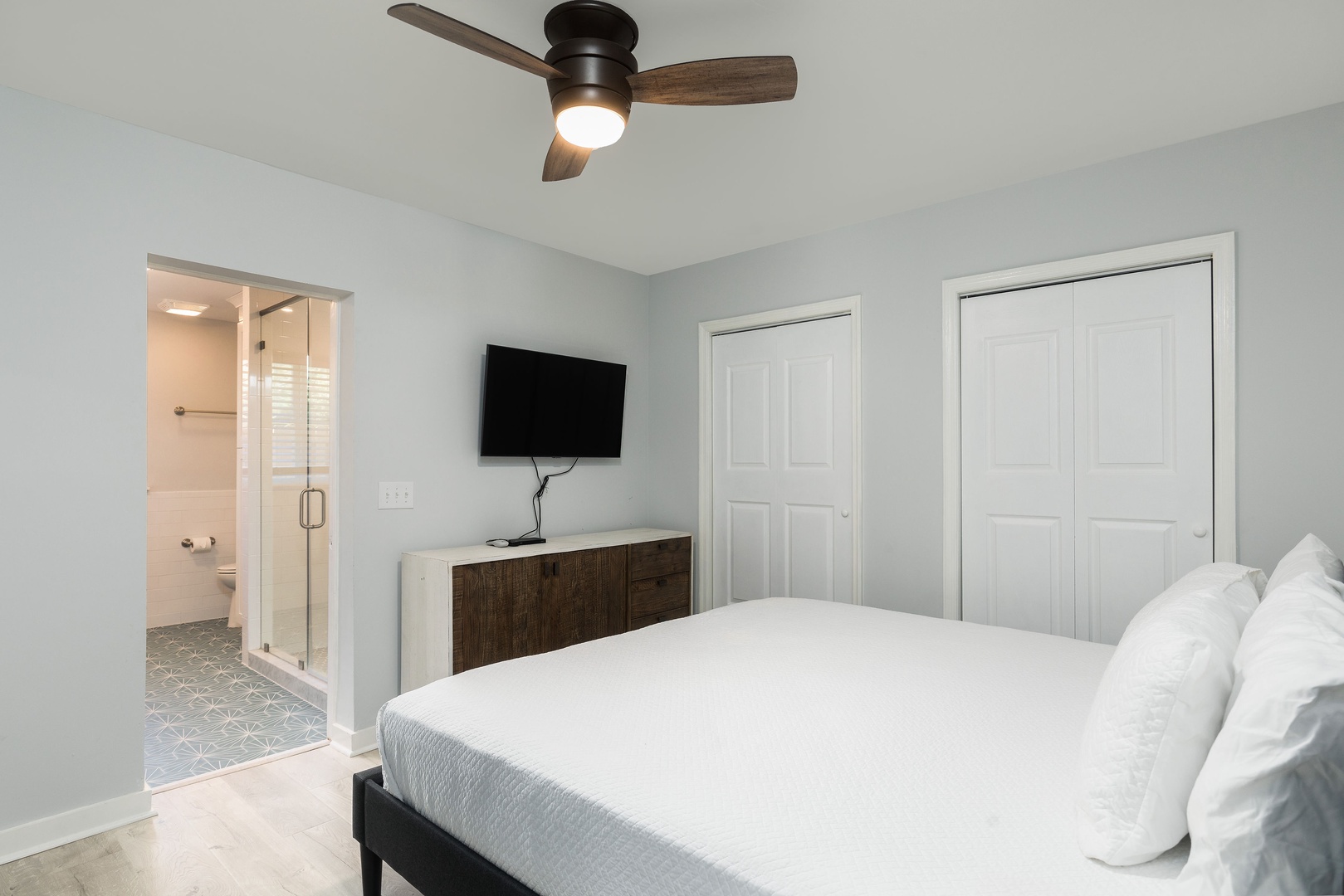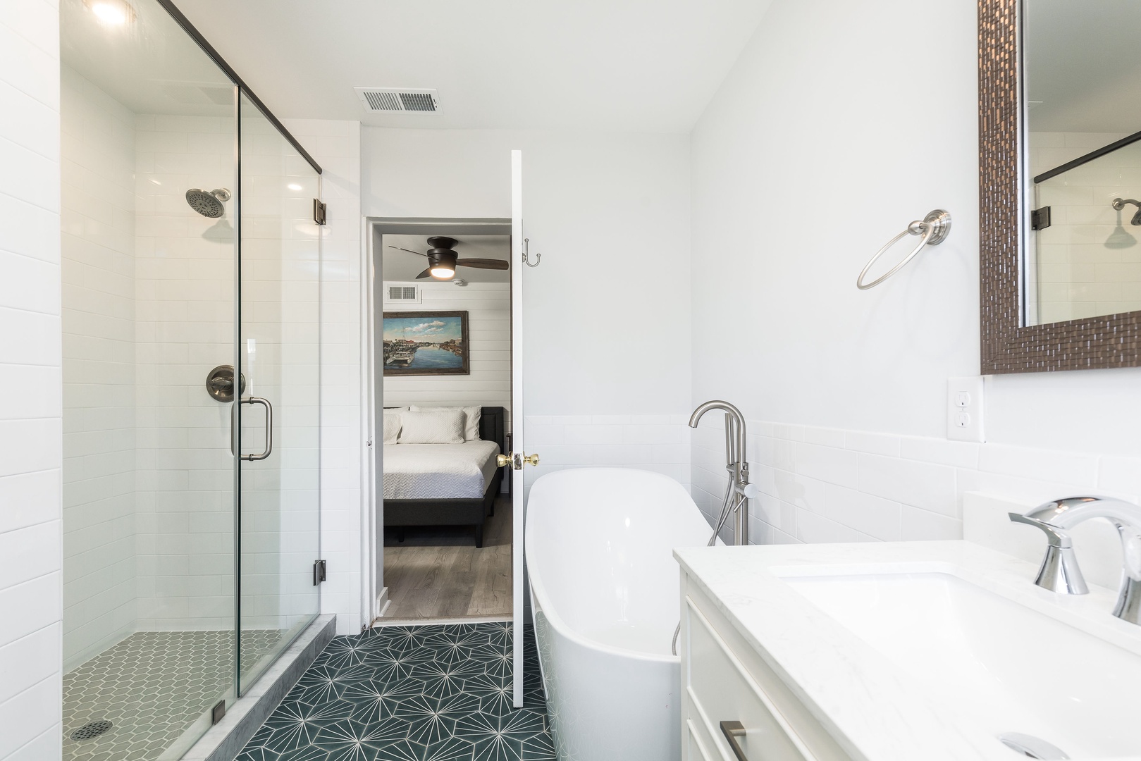 -King bedroom with an elegant master bath featuring a standalone tub.