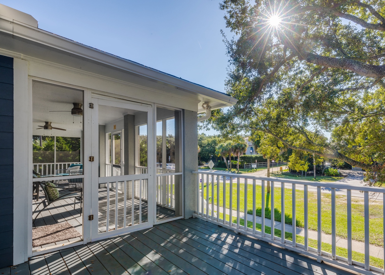 Screened Porches: Enjoy two screened-in porches—one on the second story with seating and one in lower level with a dining area, perfect for morning coffee or evening meals.