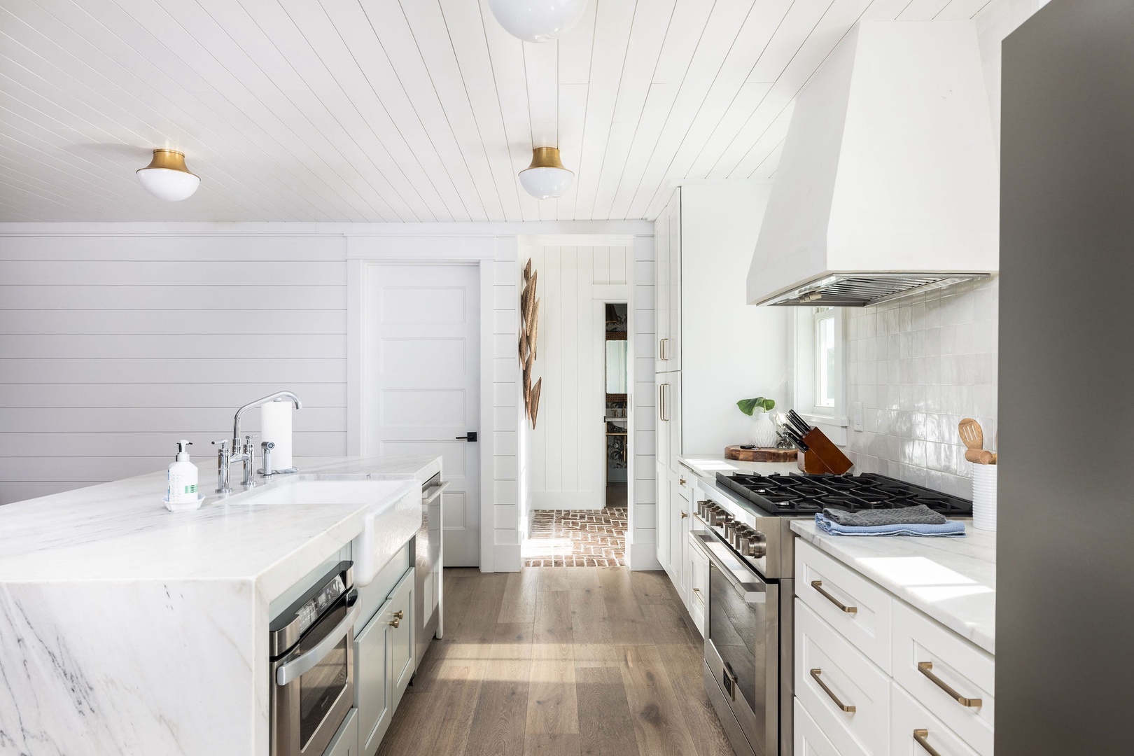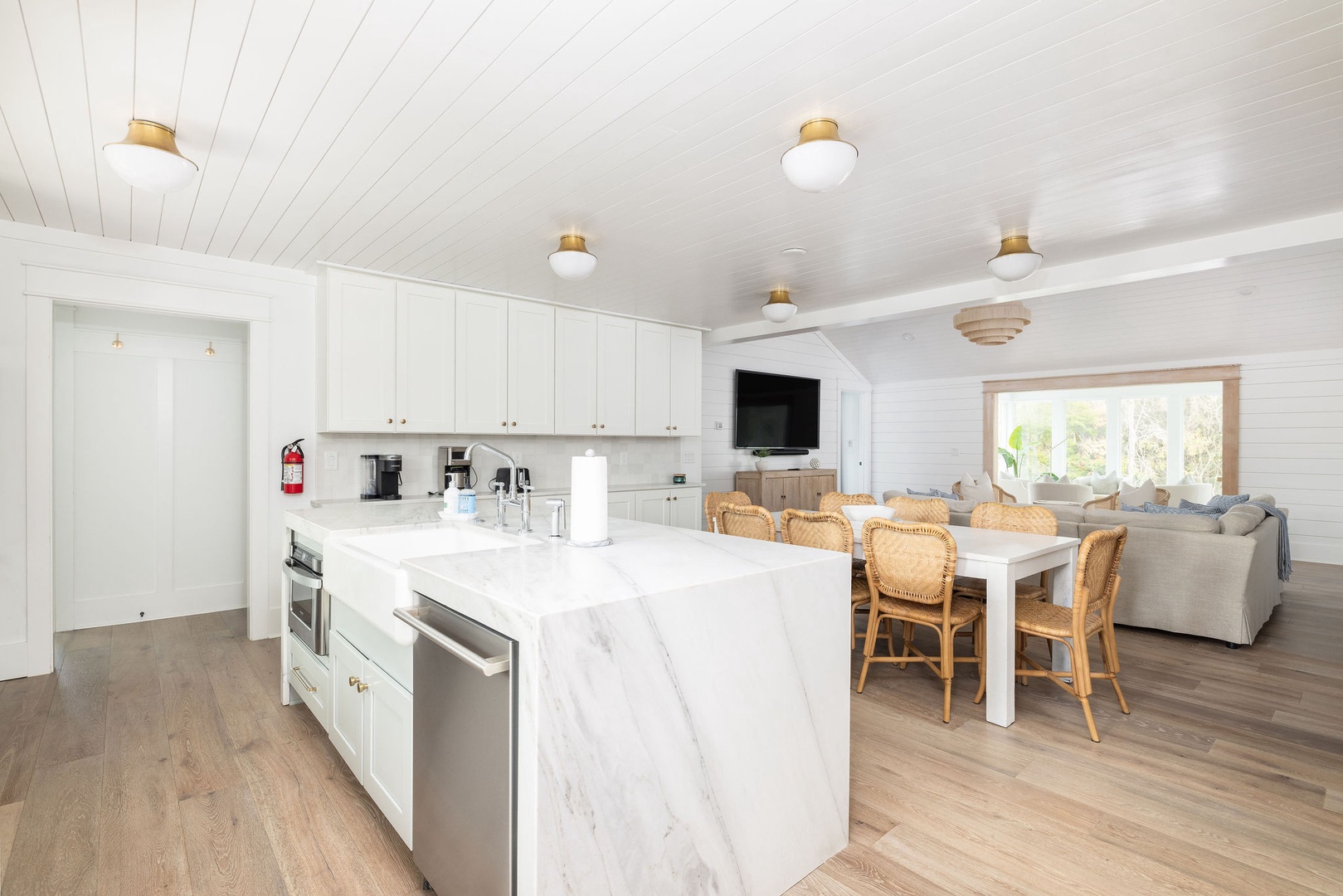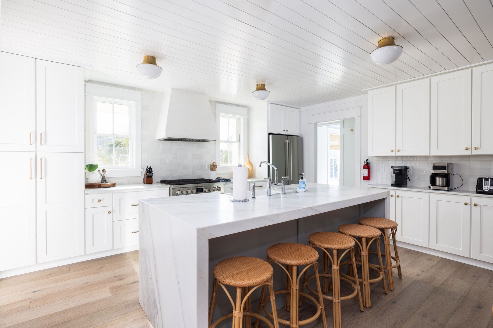 Bright and airy kitchen with quartz counters, custom finishes, and plenty of seating for gathering