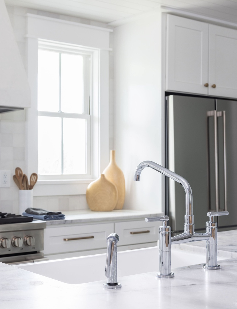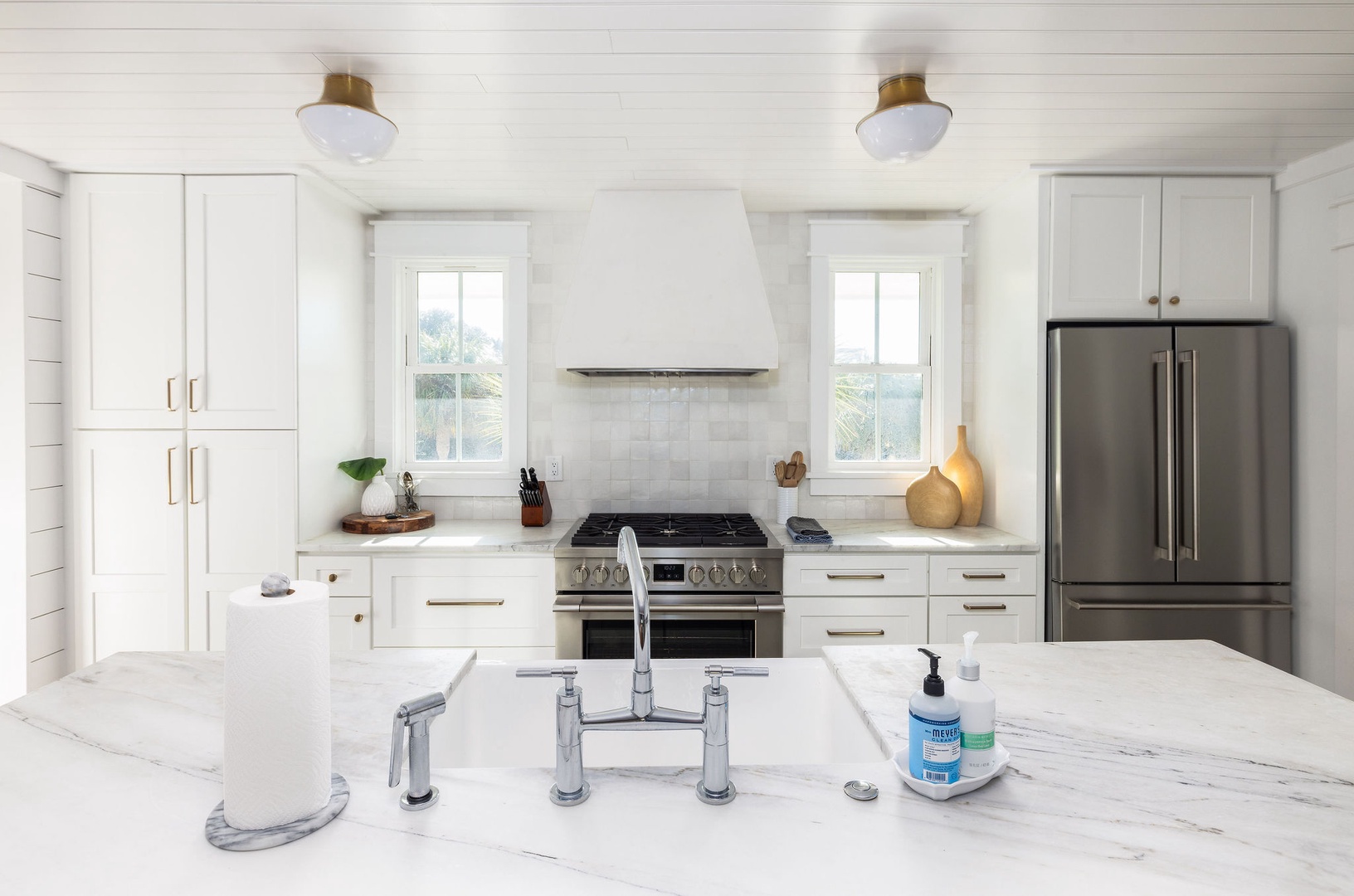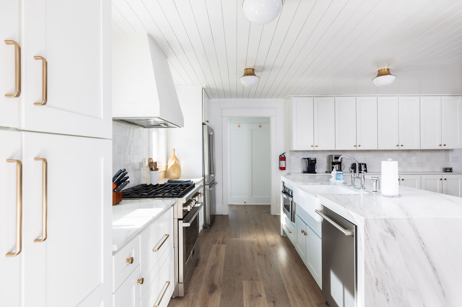 Bright and airy kitchen with quartz counters, custom finishes, and plenty of seating for gathering