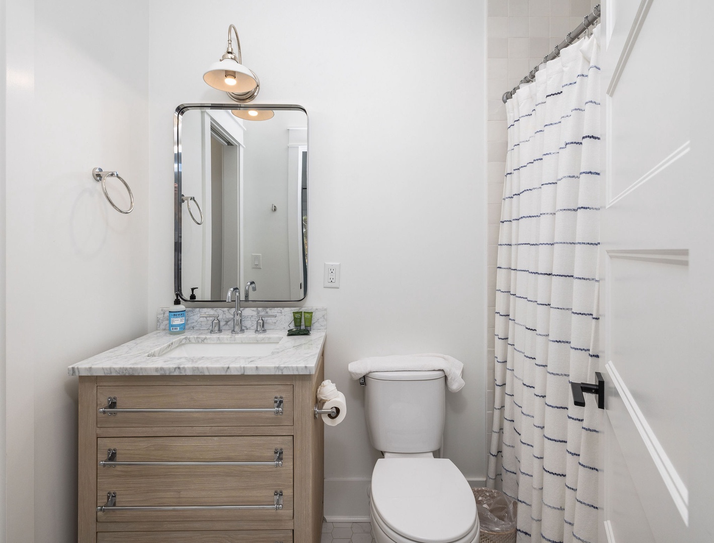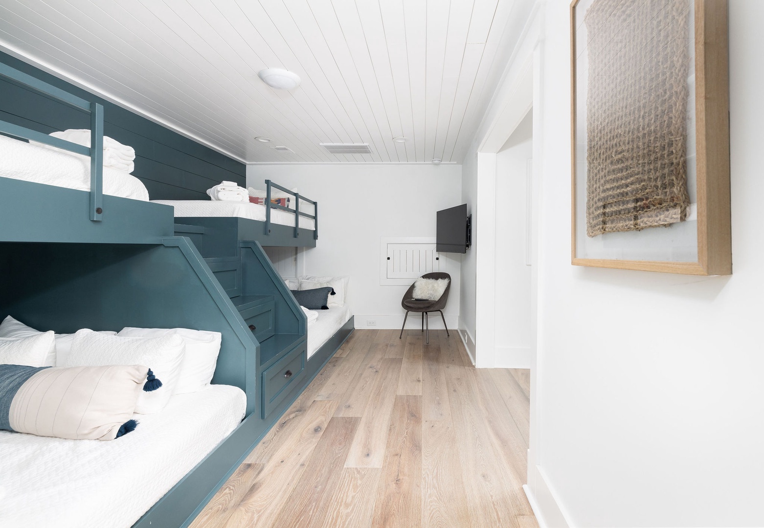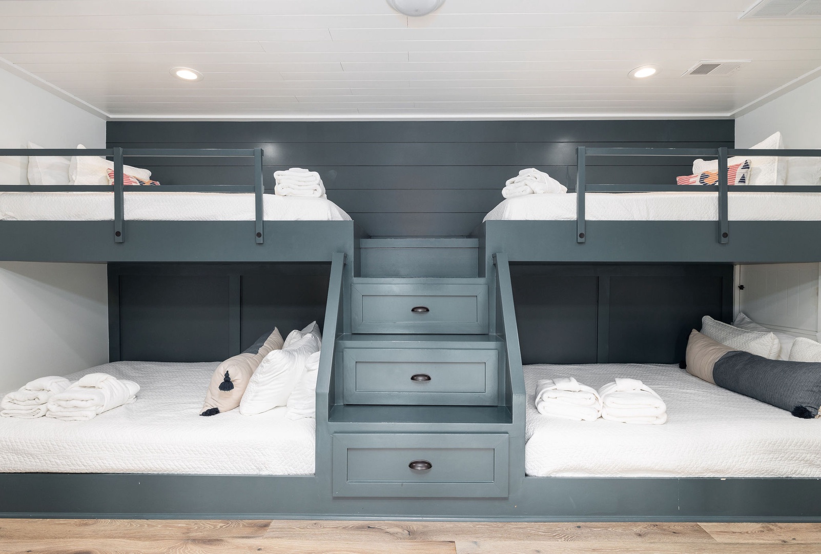 Bunk bedroom with a private bath, perfect for kids or additional guests.