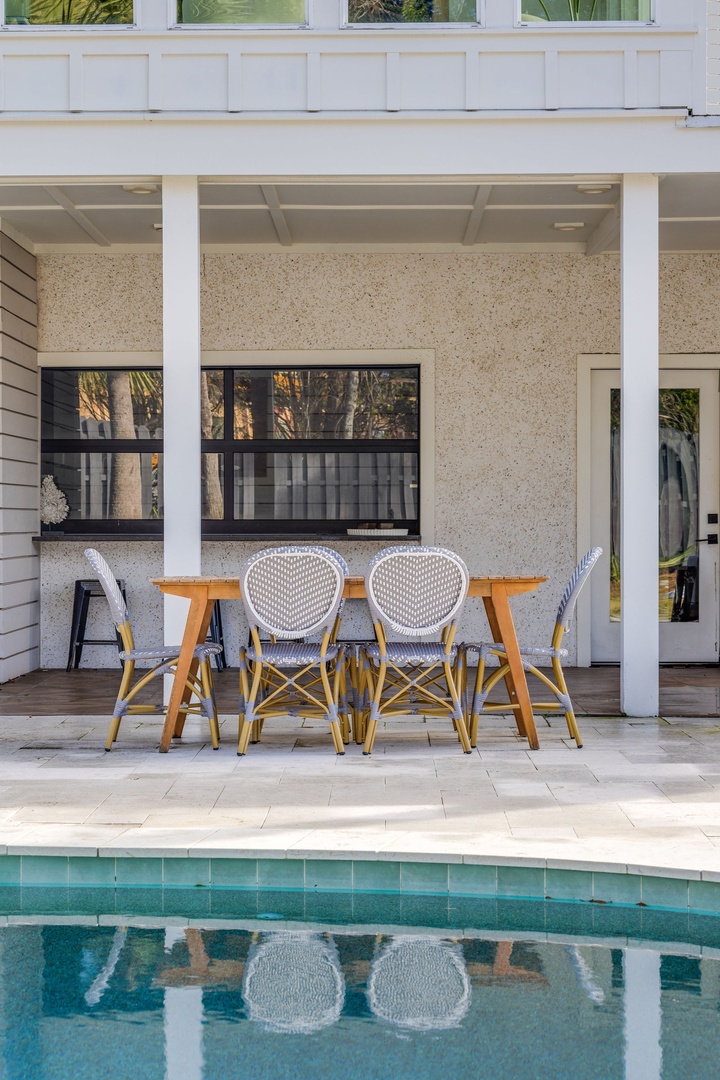 Spend sun-soaked days lounging by your private pool and hot tub, just steps from the beach