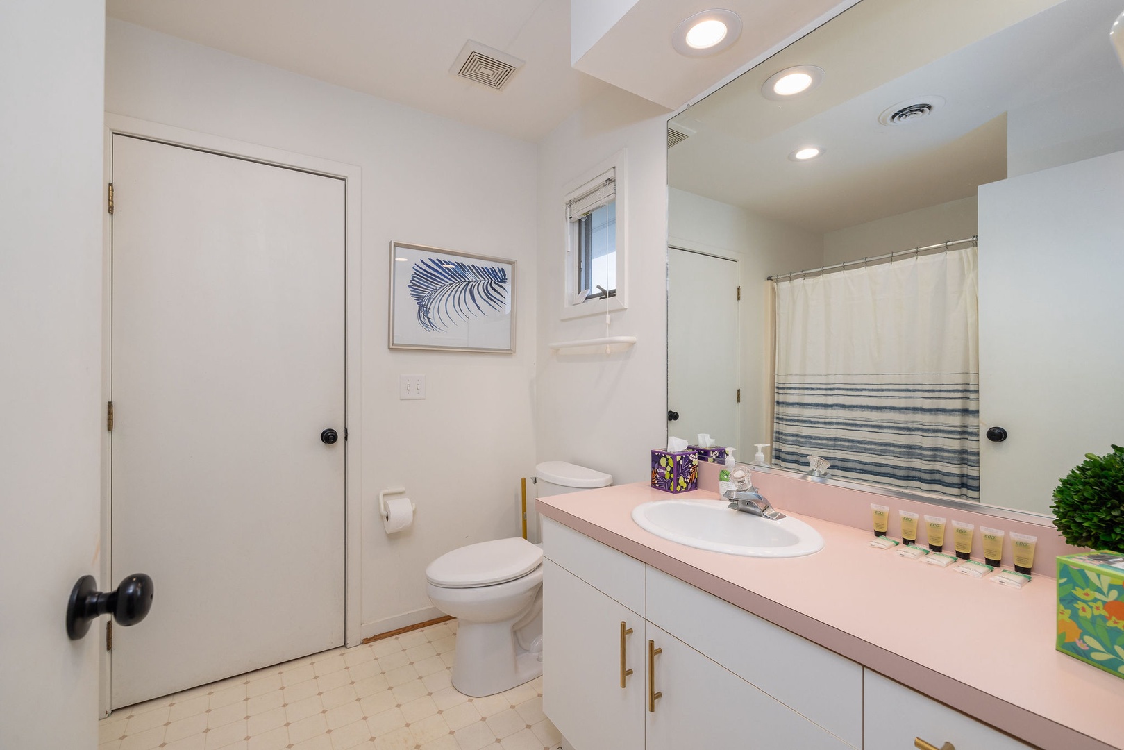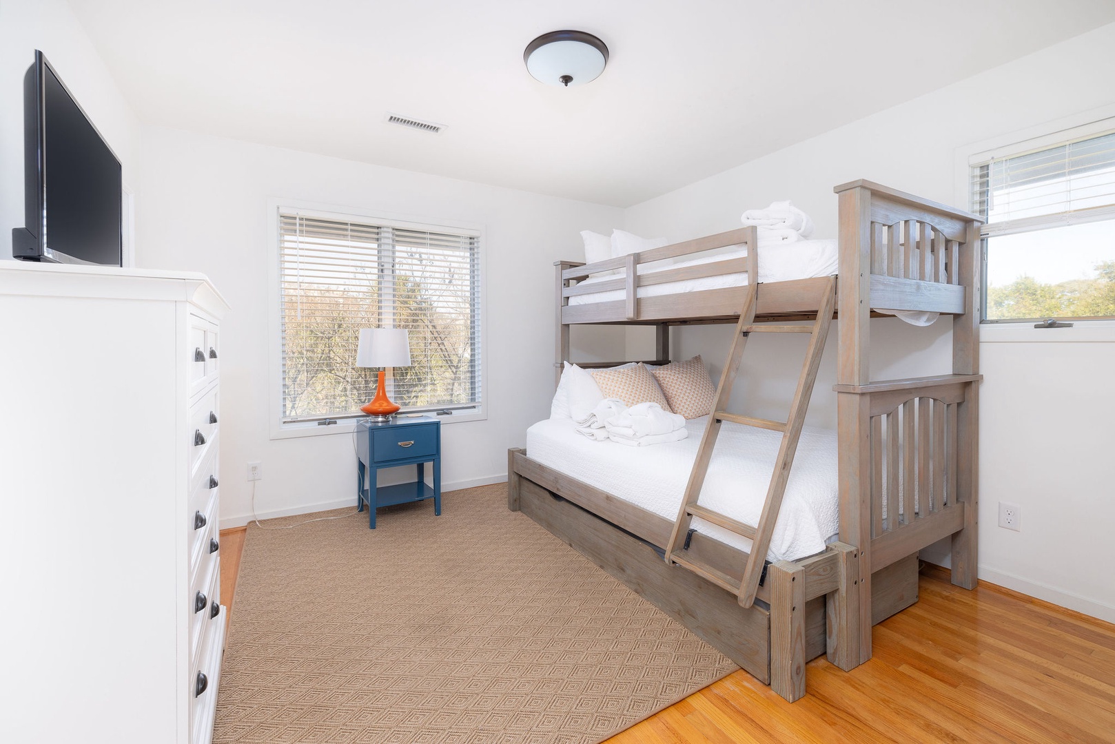Bedroom 1: Twin-over-full bunk bed, connecting to a Jack and Jill bathroom.