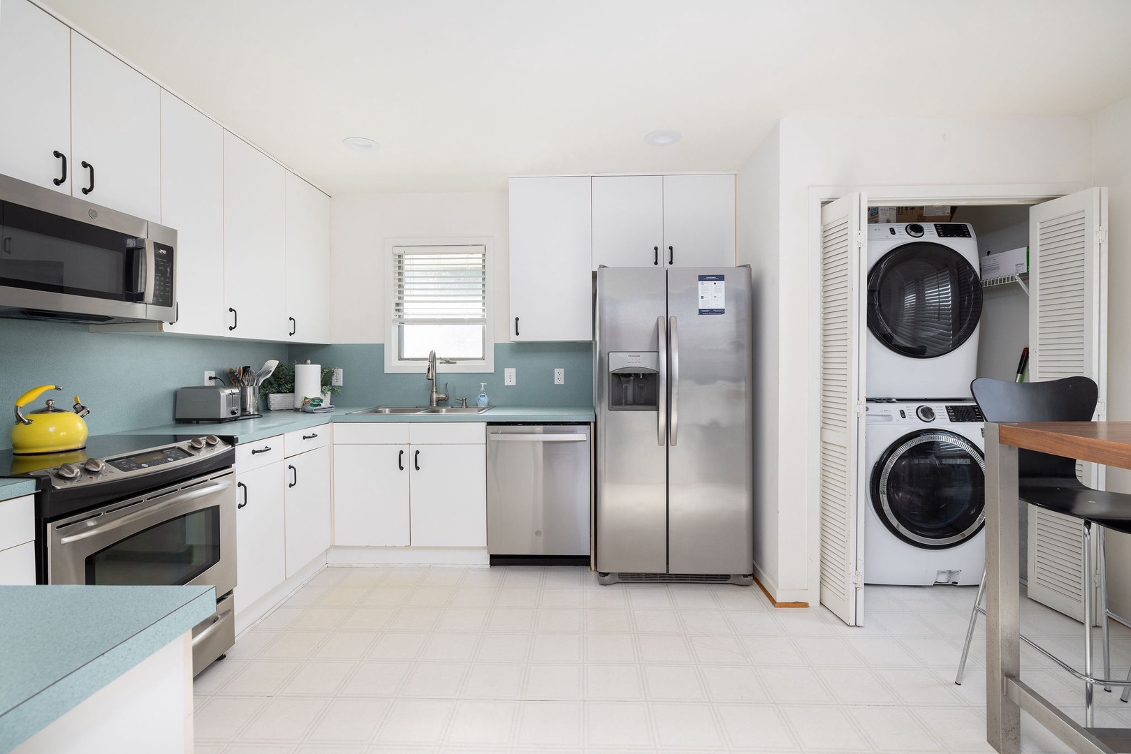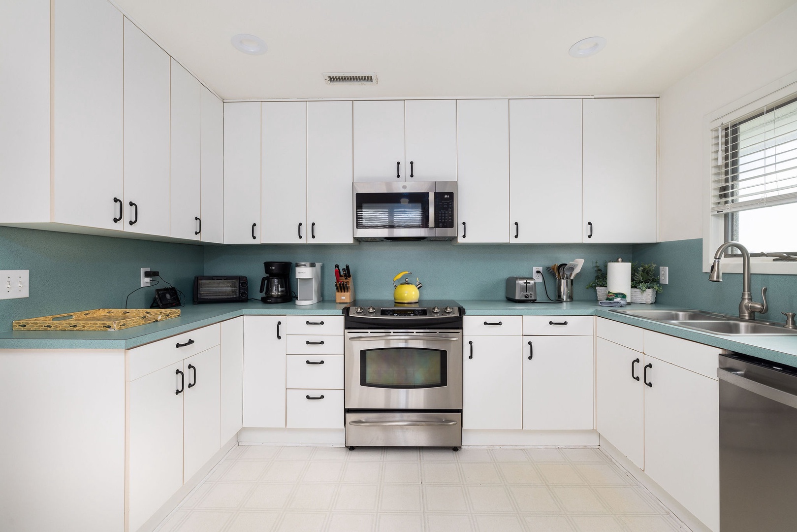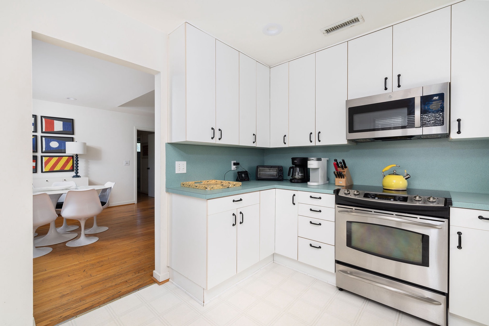 Adorable kitchen with everything needed to prepare meals and enjoy casual dining.