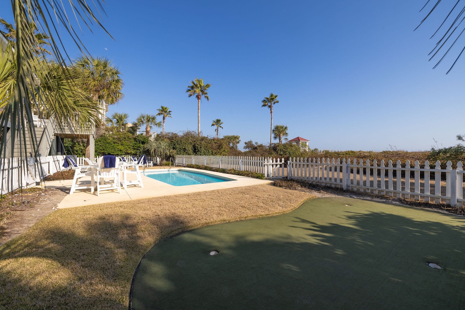 Create unforgettable memories at The Sunchaser, a stunning oceanfront home on the Isle of Palms. This spacious and versatile property offers everything you need for a perfect beach vacation. Take a stroll down your private boardwalk to the picturesque white sandy beach, relax by the pool, or practice your putting skills on the backyard green. Enjoy panoramic ocean views from two expansive decks, and unwind in this luxurious coastal retreat designed for families and friends.