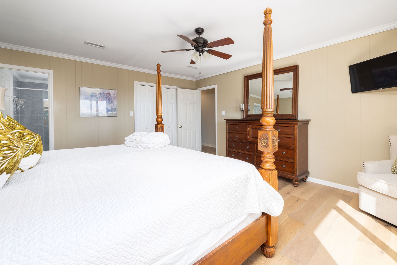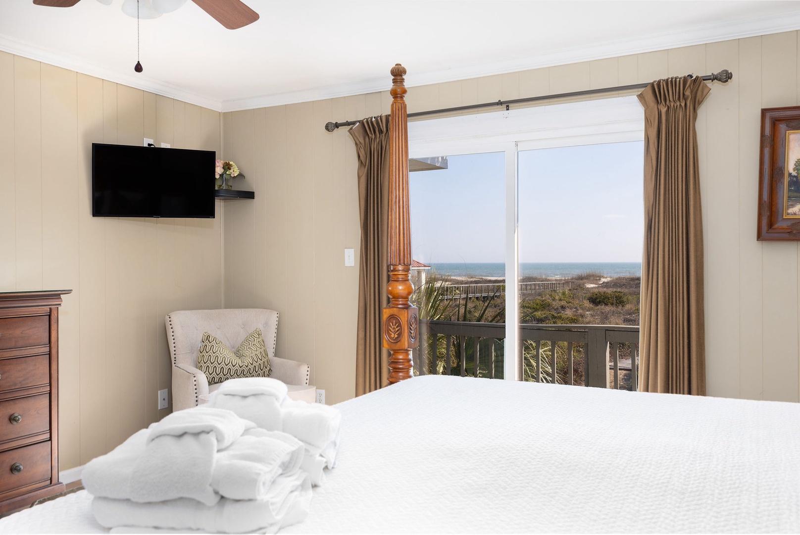 Bedroom 5: King bed, ocean views, and shared bathroom.