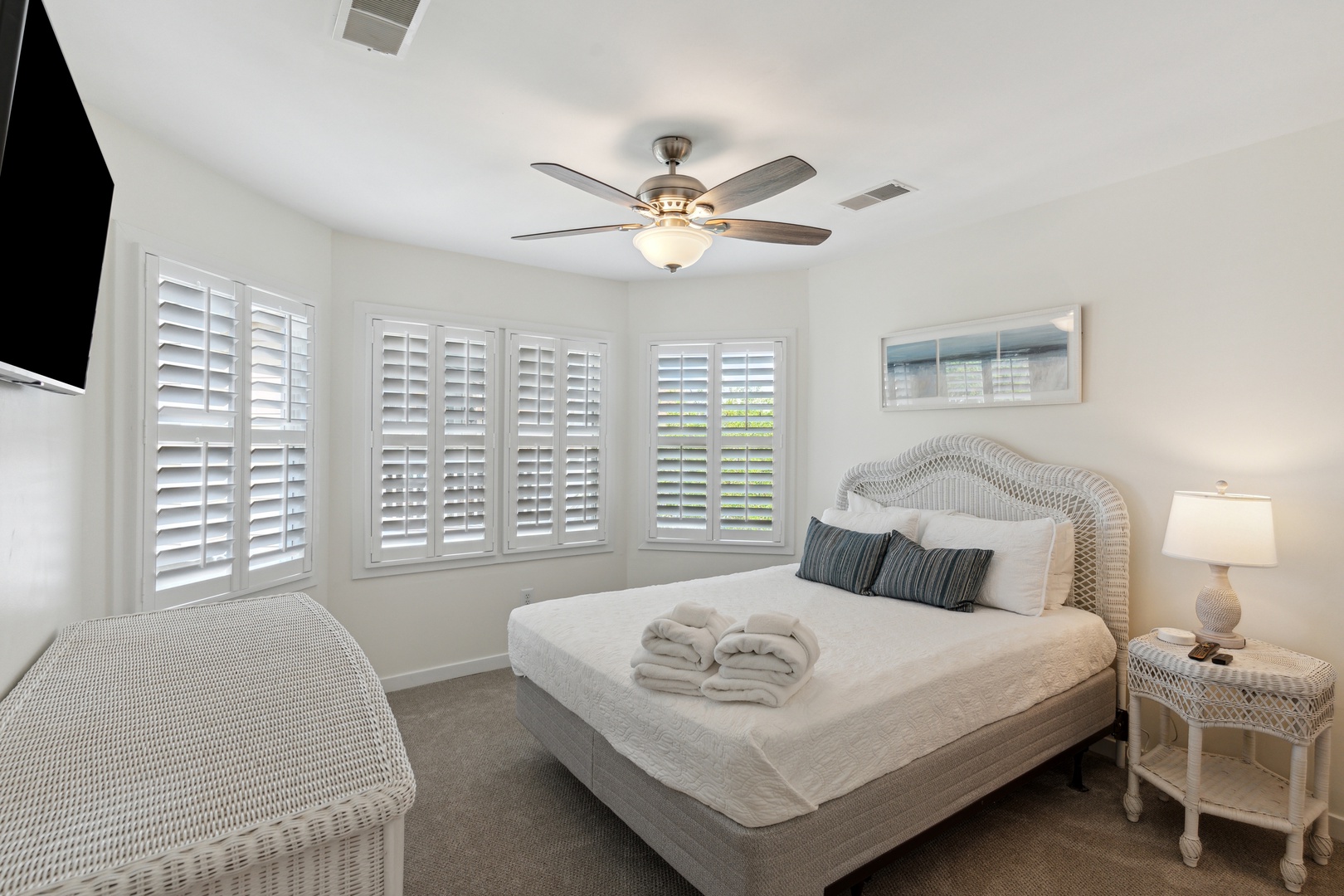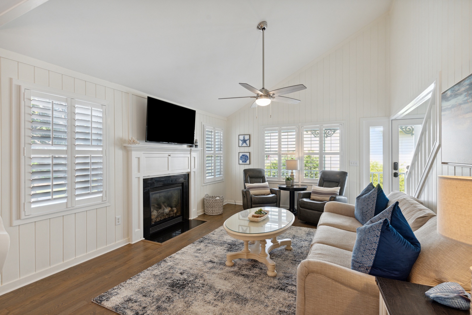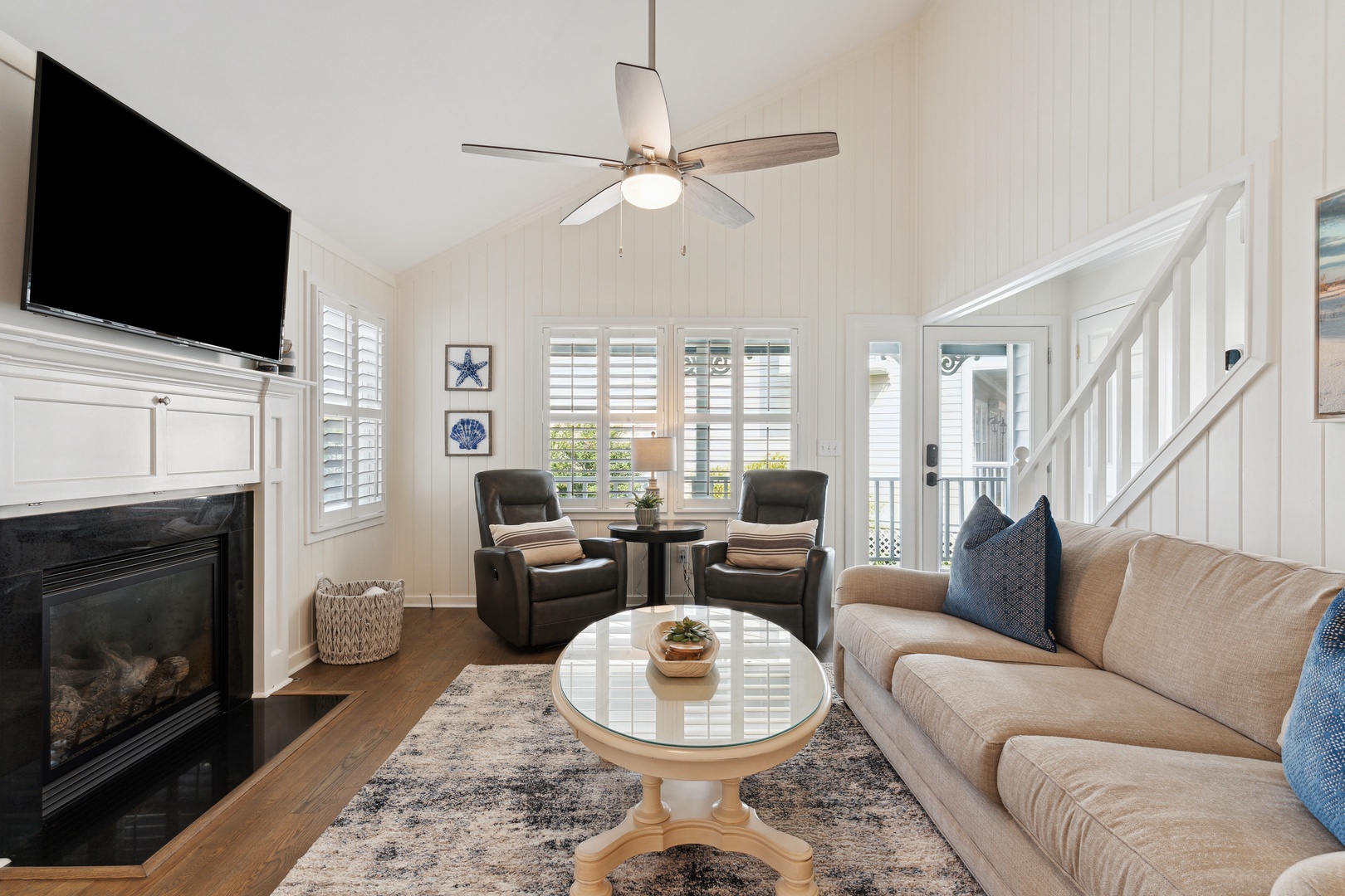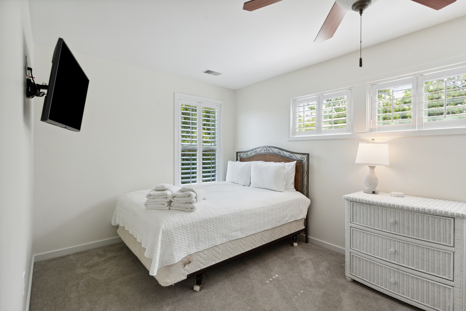 Each bedroom is designed with ample closet space and mounted flat-screen TVs, ensuring comfort and convenience for all guests.