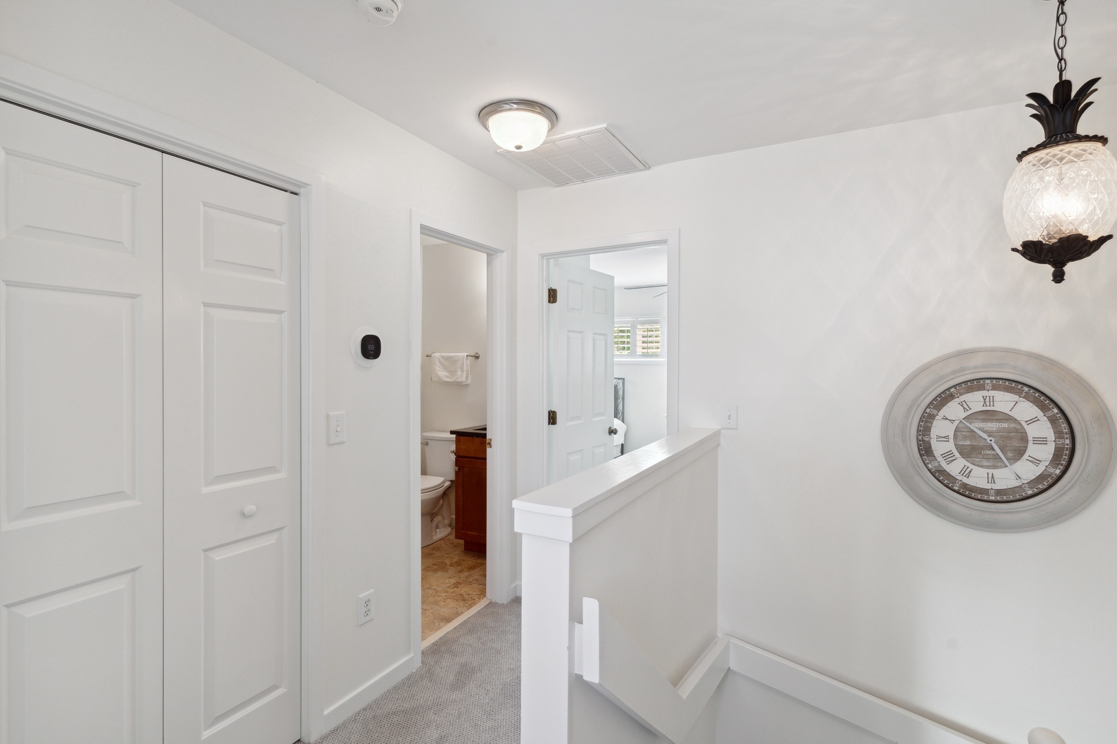On the second floor, you’ll find two guest bedrooms. The first guest bedroom includes a queen-size bed, while the second guest bedroom is furnished with both a queen-size bed and a bunk bed (full over full).