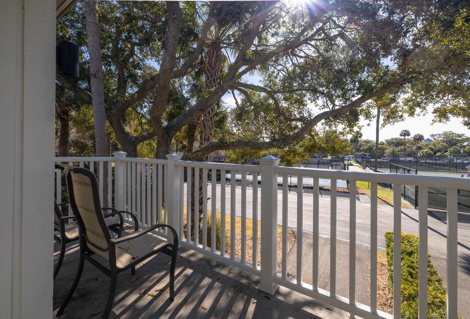 Enjoy tranquil views of the trees and lagoon from the screened-in porch off the kitchen. The property also features three balconies: one off the first bedroom with views of the tennis courts, one off the primary suite overlooking the lagoon and one off the living room. These outdoor spaces are ideal for relaxing with a cup of coffee or unwinding in the evening.