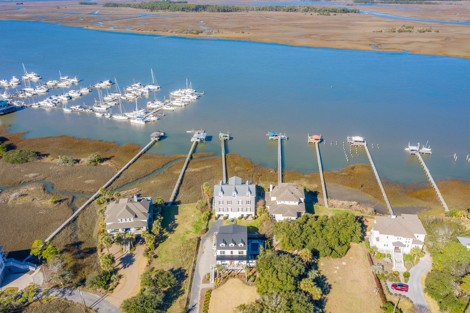 Unwind in your own coastal retreat with stunning marsh views and direct dock access.