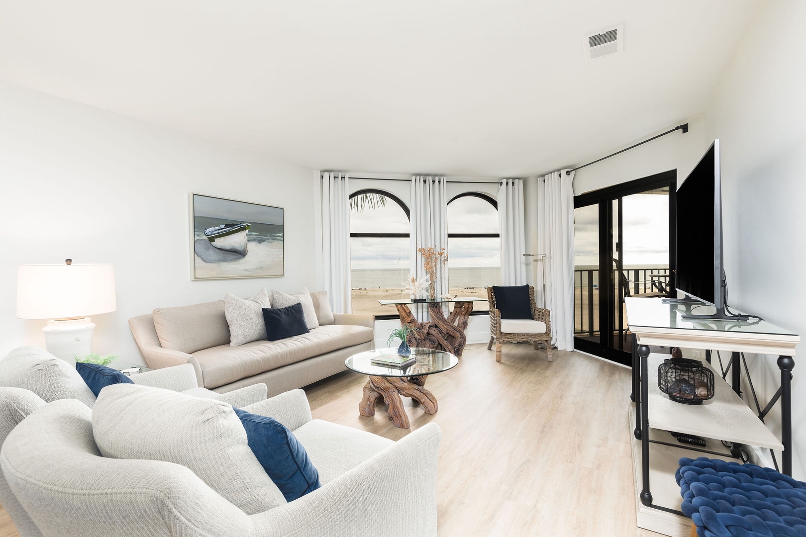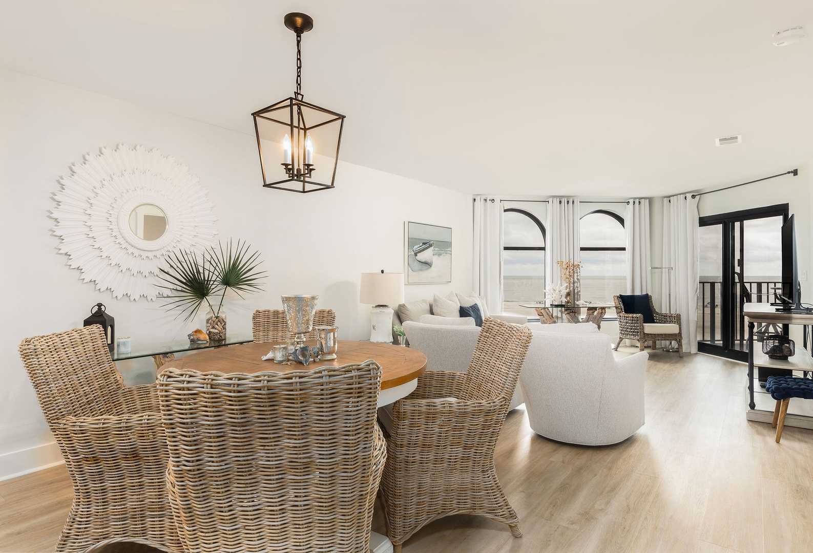 Welcome to "A Wave From it All," a stunning 2-bedroom, 2-bathroom oceanfront villa located within the gated community of Wild Dunes. Recently renovated and professionally designed, this luxurious condo offers breathtaking ocean views, modern amenities, and a serene retreat for families or small groups. With its light-filled interiors and premier location, "A Wave From it All" is the perfect destination for a relaxing coastal getaway.