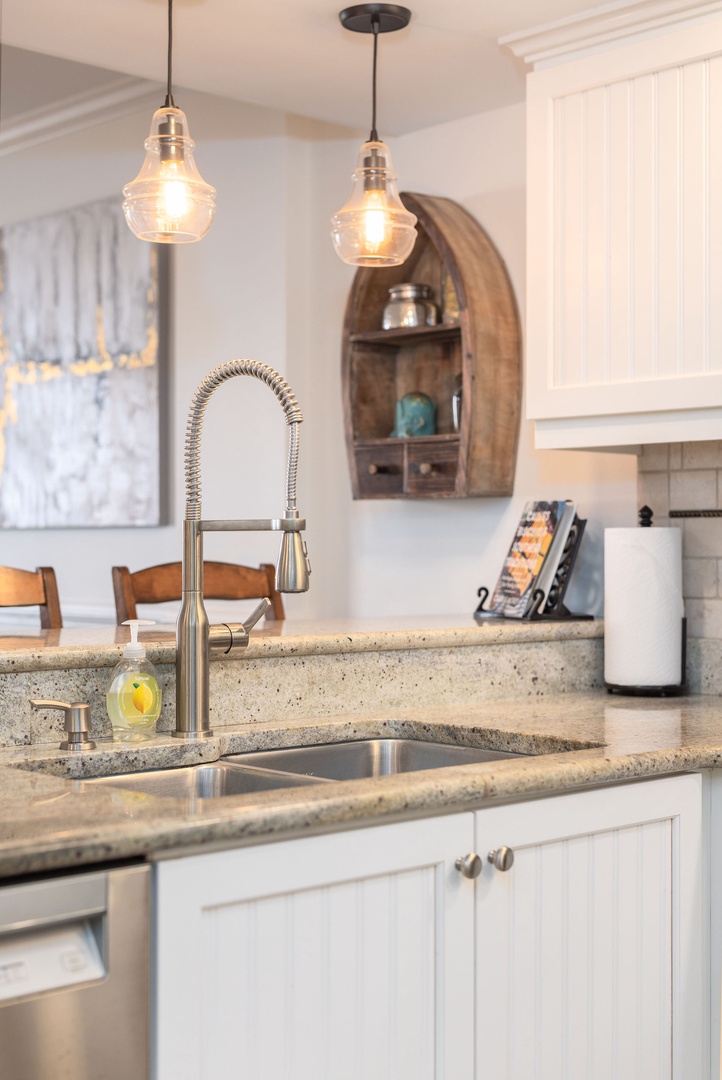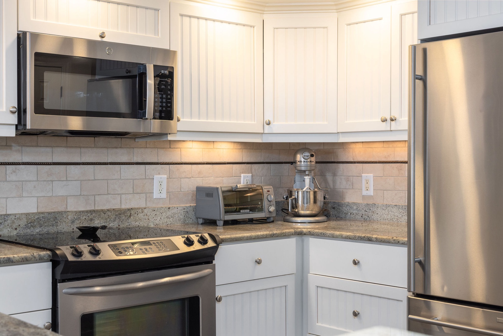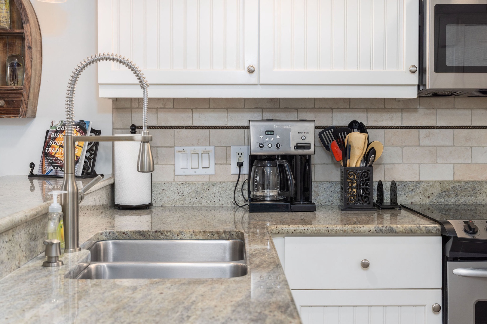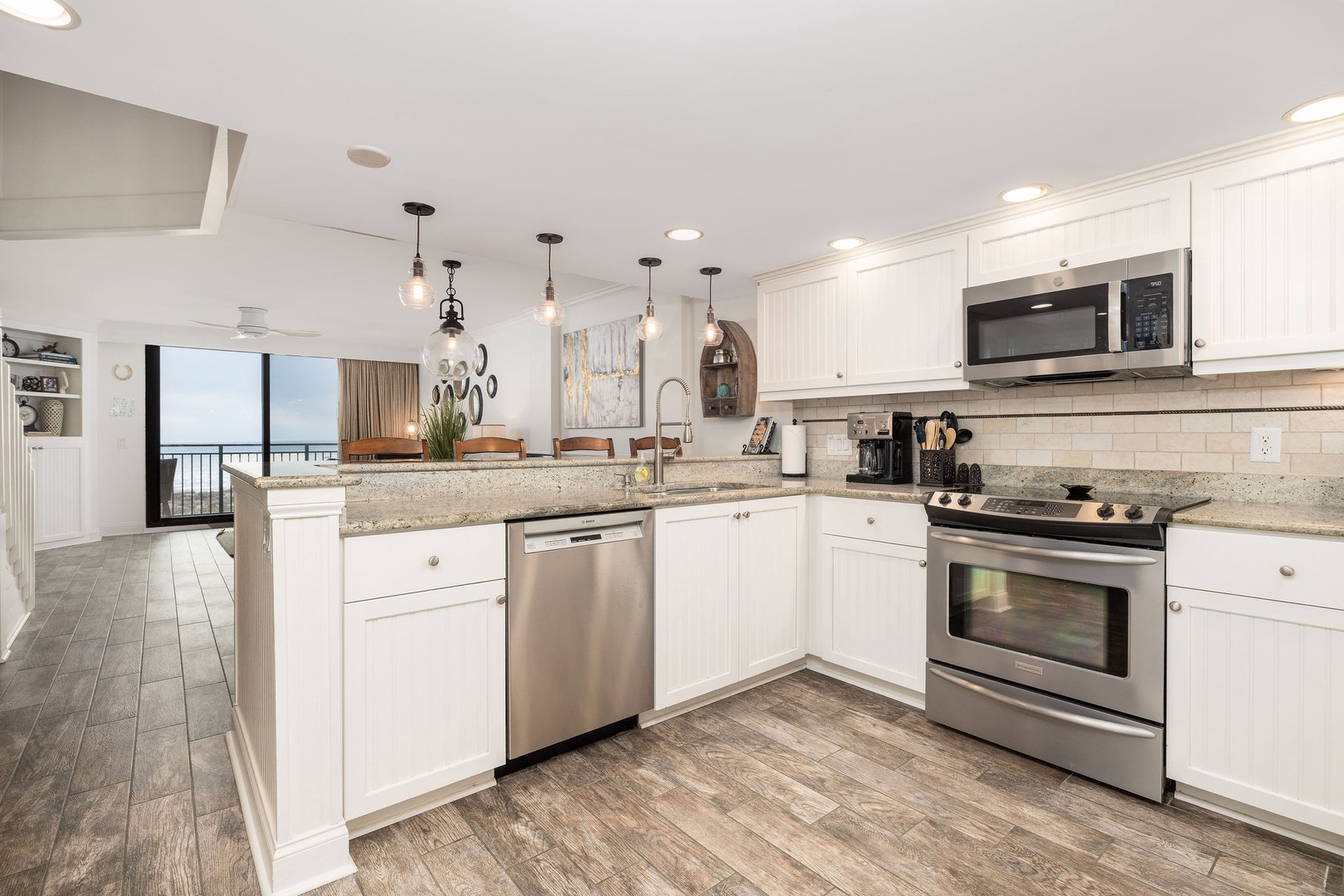 Fully equipped kitchen with modern appliances and ample counter space for preparing meals. Ocean views from the kitchen to enhance your culinary experience.