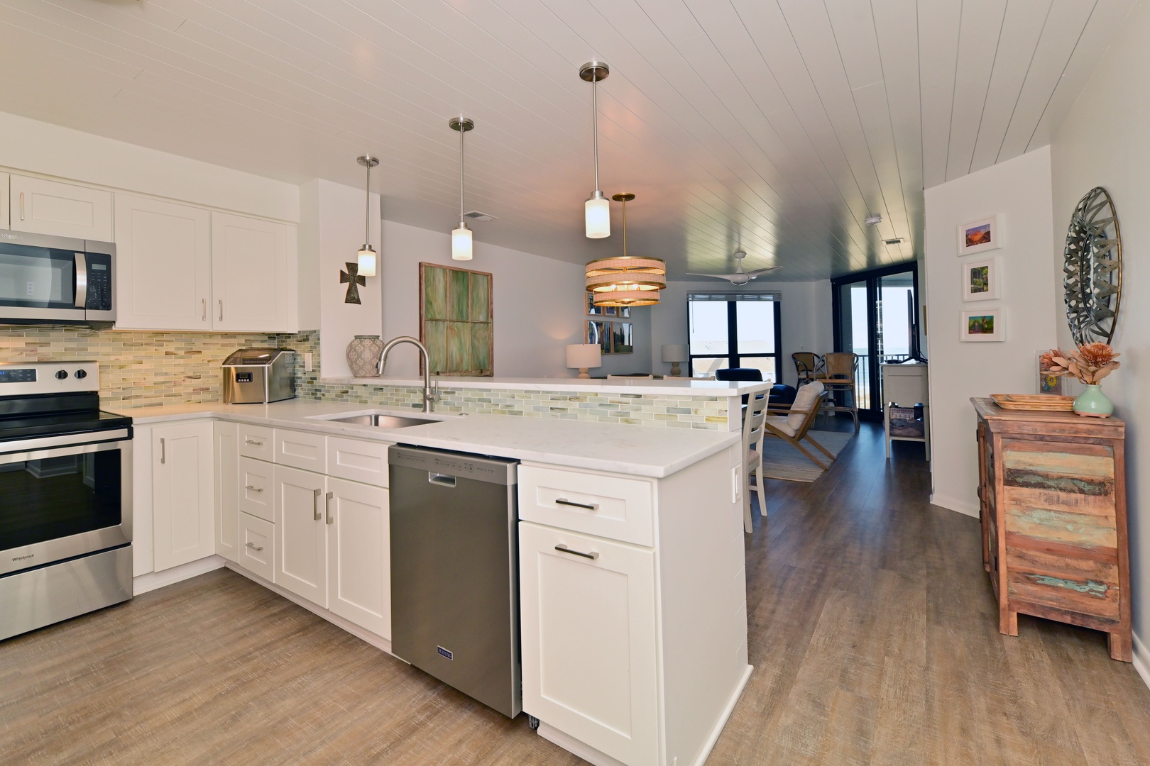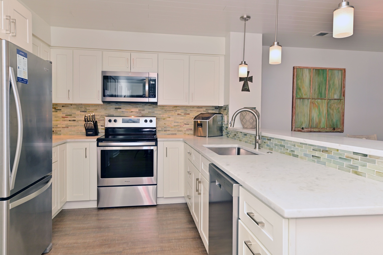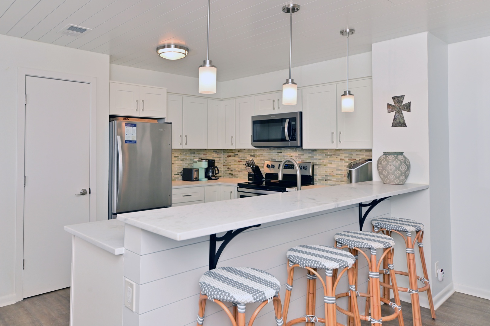 Spacious kitchen with bar seating, perfect for casual meals and gathering