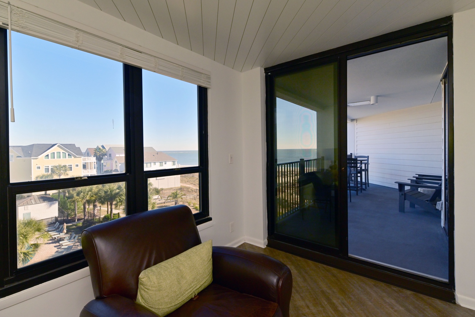 Living room with large windows and direct access to the balcony with ocean views