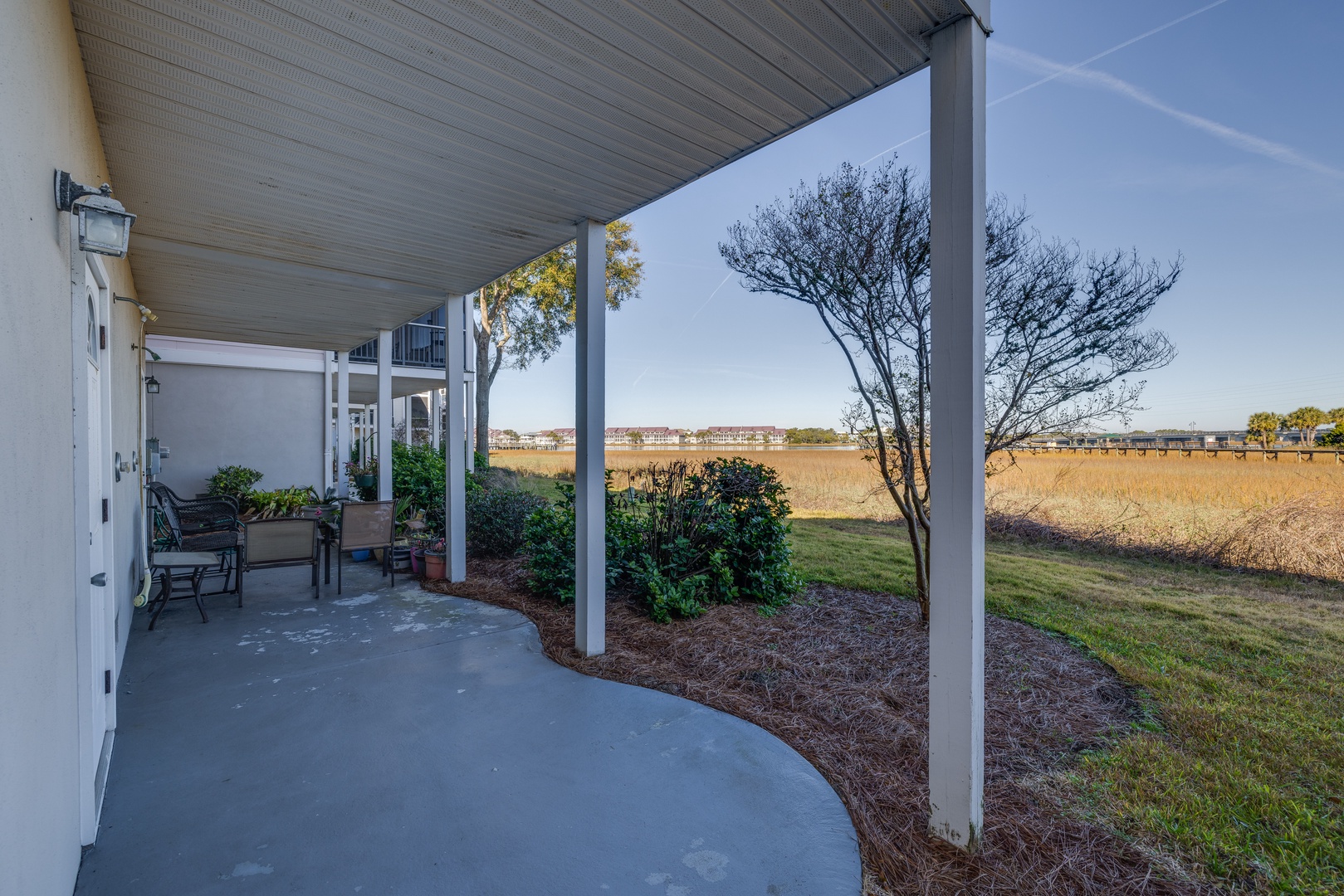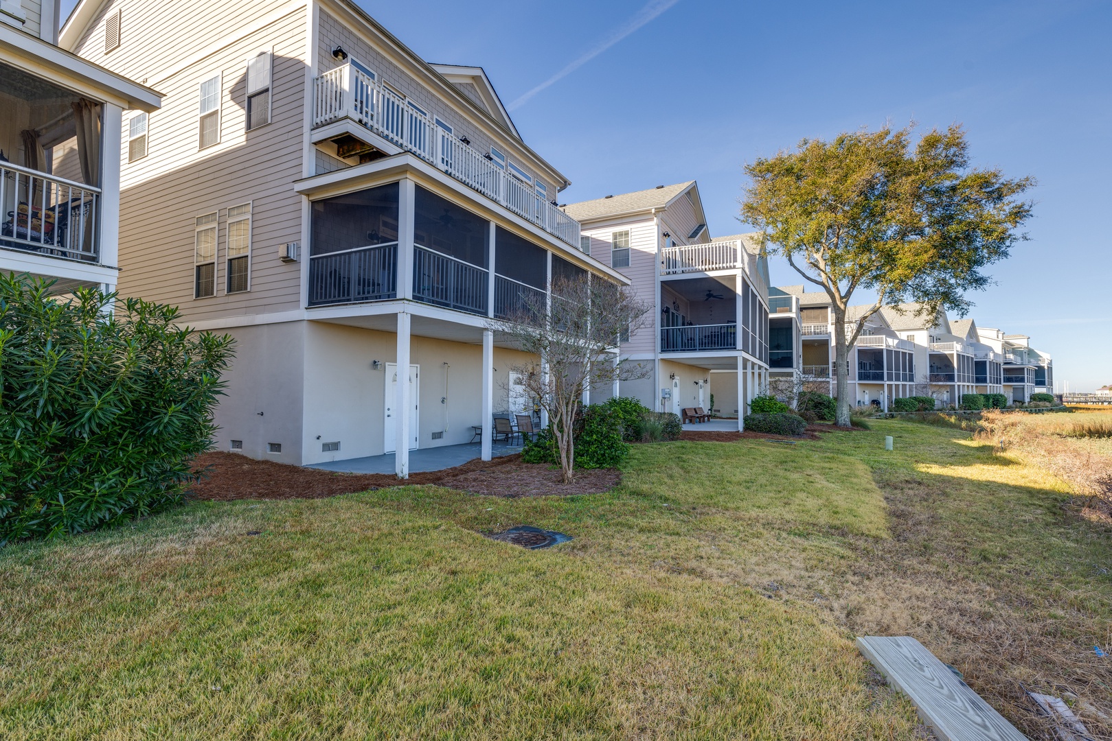 Relax on the screened porch or take advantage of the community's private pier, dock, and pool, exclusive to Waters Edge residents. Enjoy the outdoor shower after a day on the beach, and the small yard offers additional space to unwind.