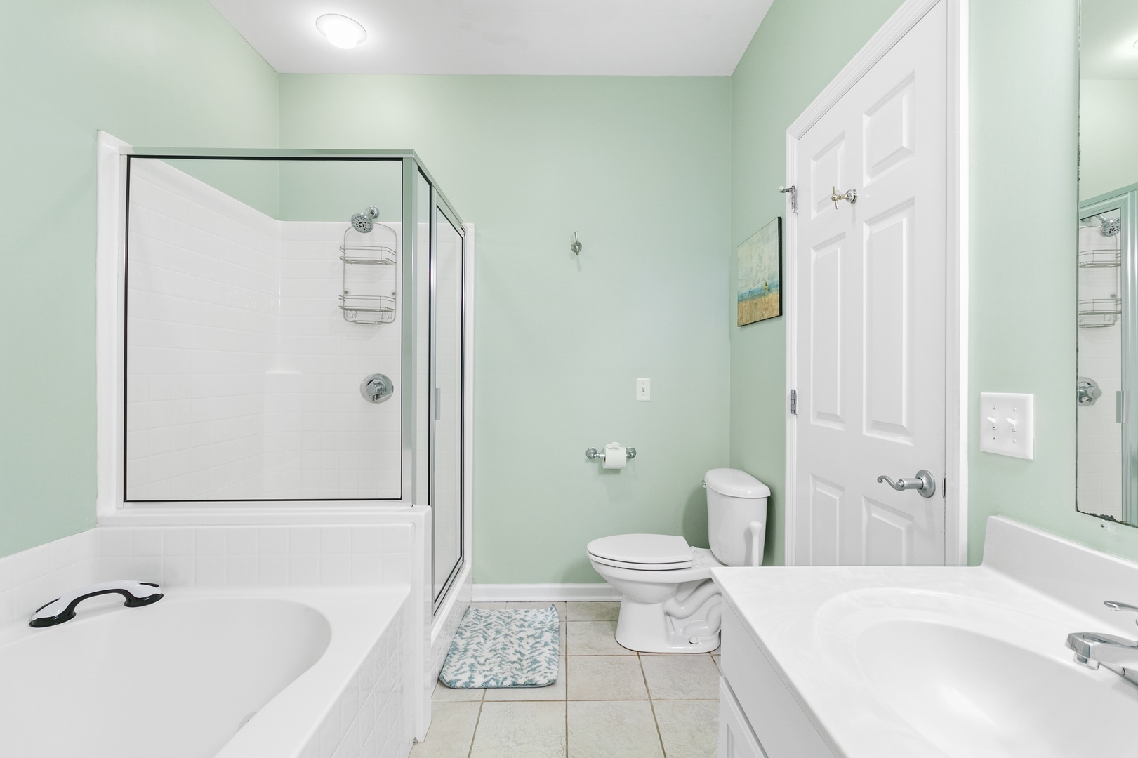 Three full bathrooms, each designed for convenience and comfort. The master bathroom features a luxurious jacuzzi tub and walk-in shower.