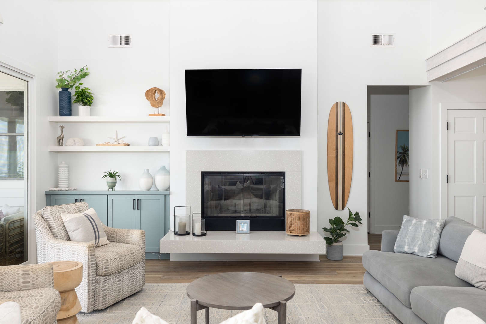 The home includes two shared, modern bathrooms with premium finishes and plenty of space for guests to freshen up after a day at the beach. Fresh towels and starter toiletries are provided.