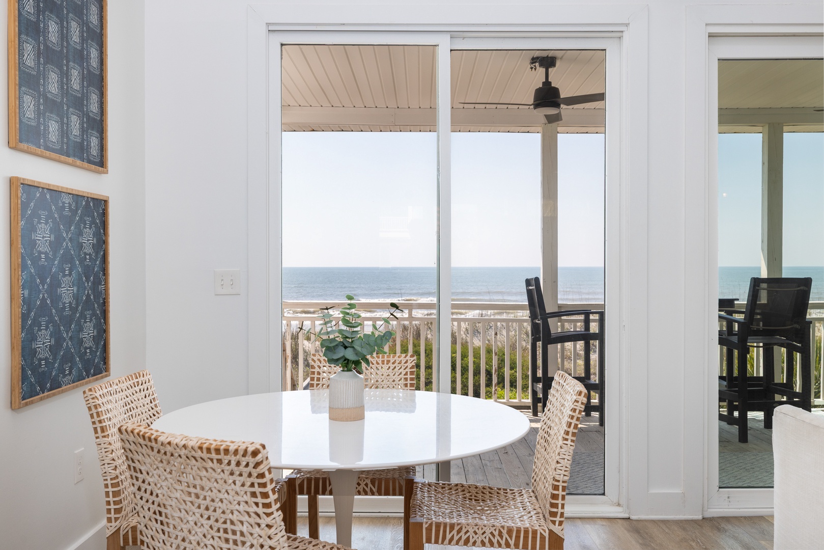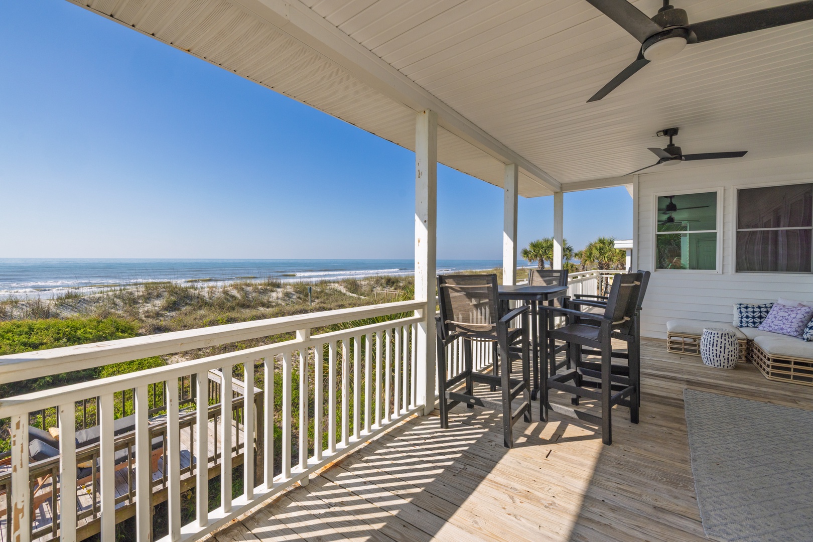 The expansive deck offers panoramic ocean views and is perfect for enjoying your morning coffee or an evening cocktail while listening to the waves. Direct beach access makes it easy to dip your toes in the sand whenever you please.