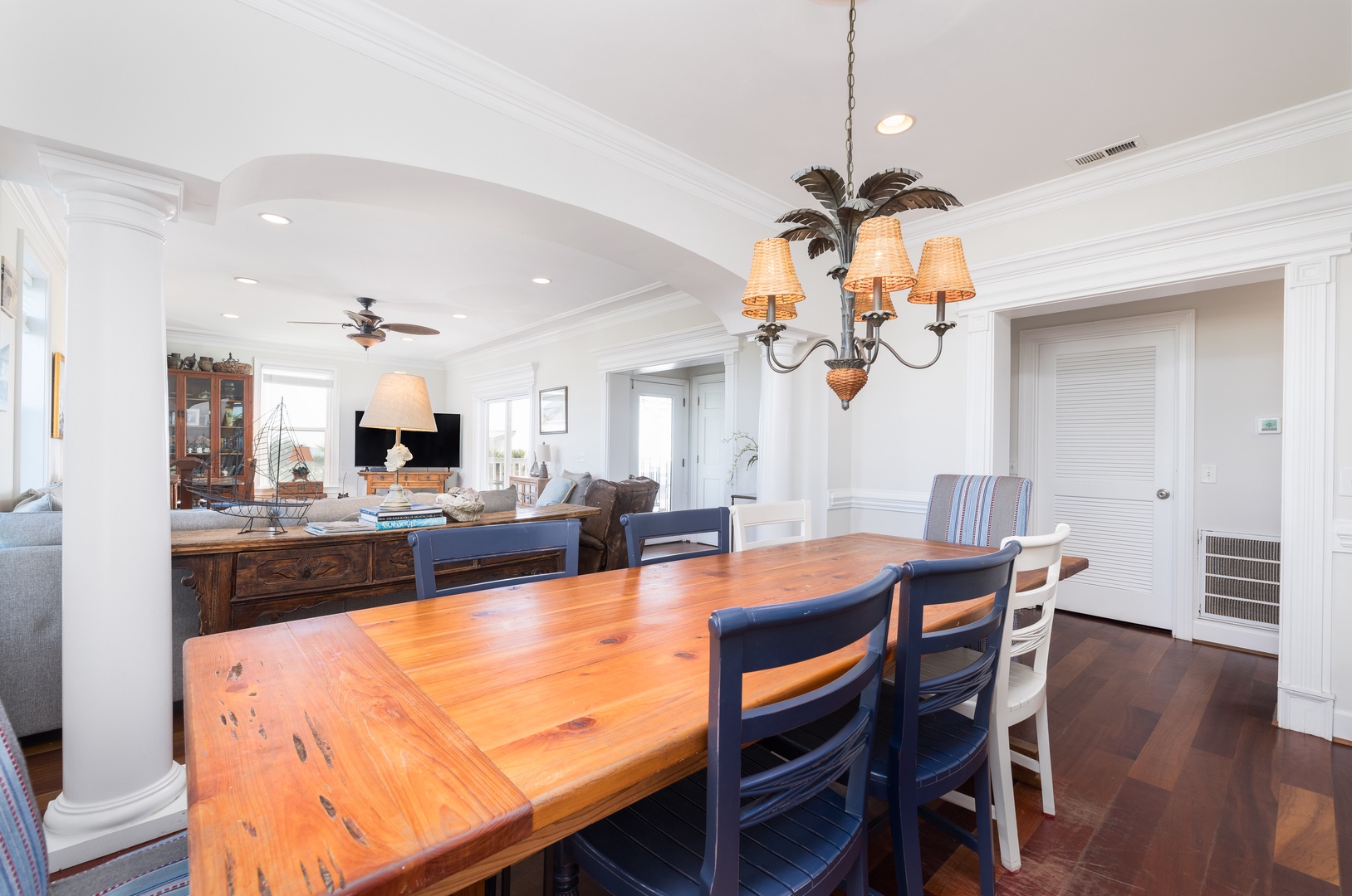 Large farmhouse-style dining table to accommodate families of all sizes.