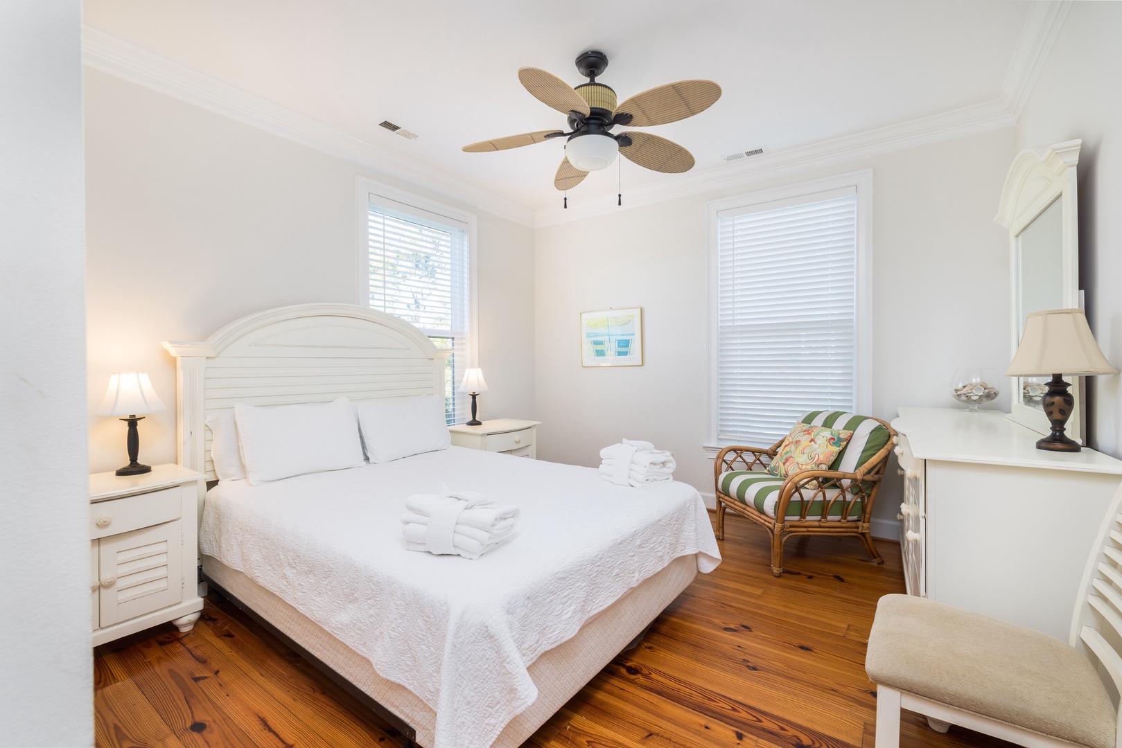 King Bedroom: Marsh-side, ensuite bathroom.