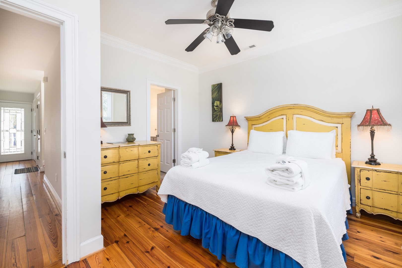 King Bedroom: Street-side, ensuite bathroom.
