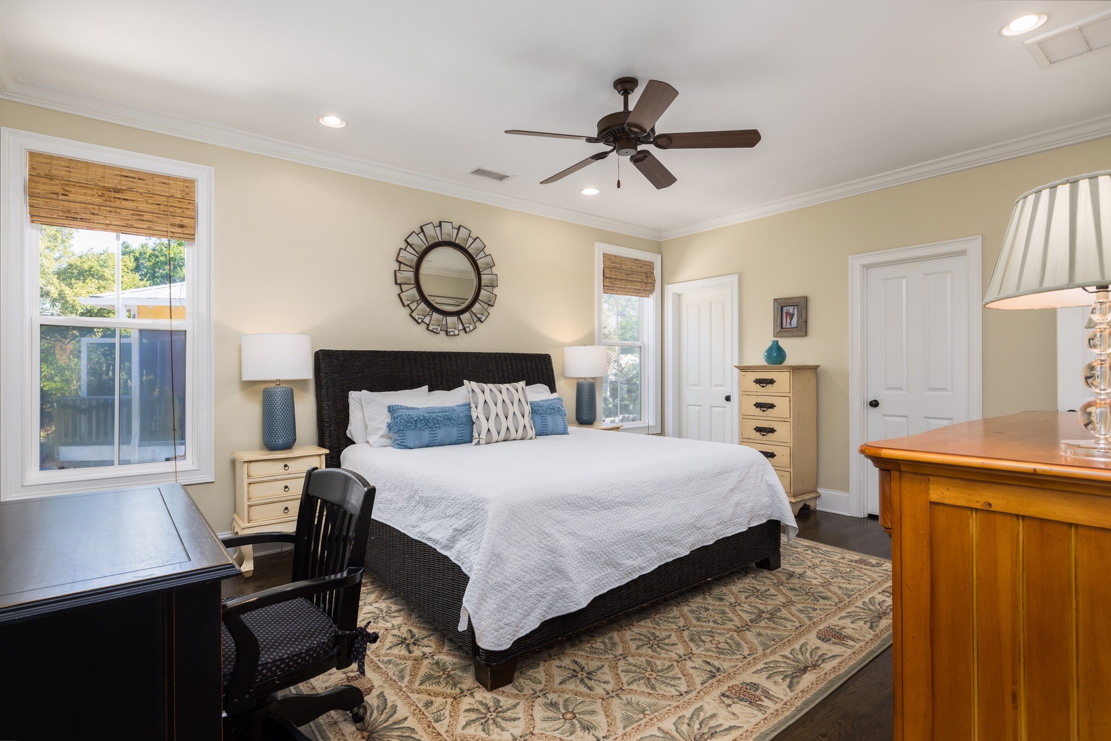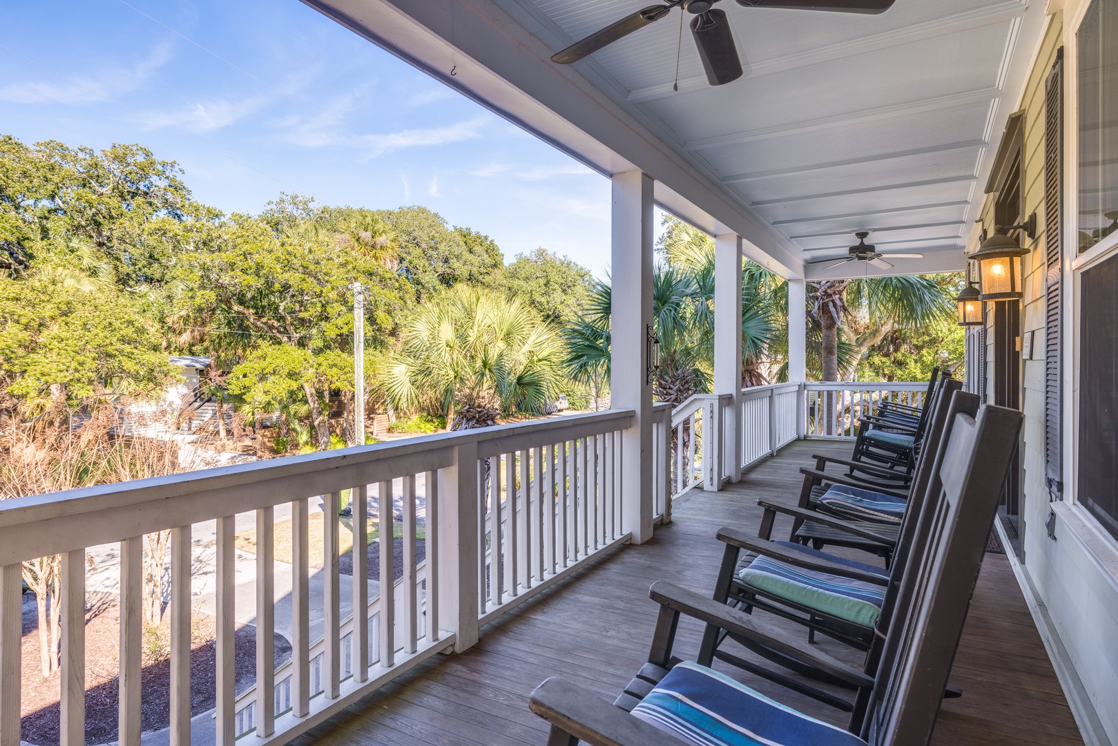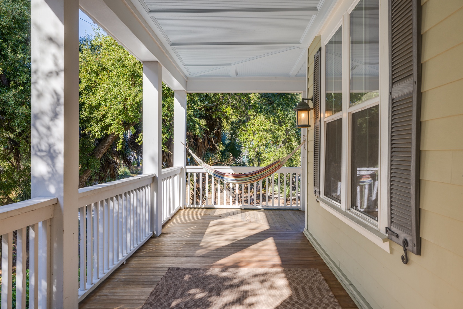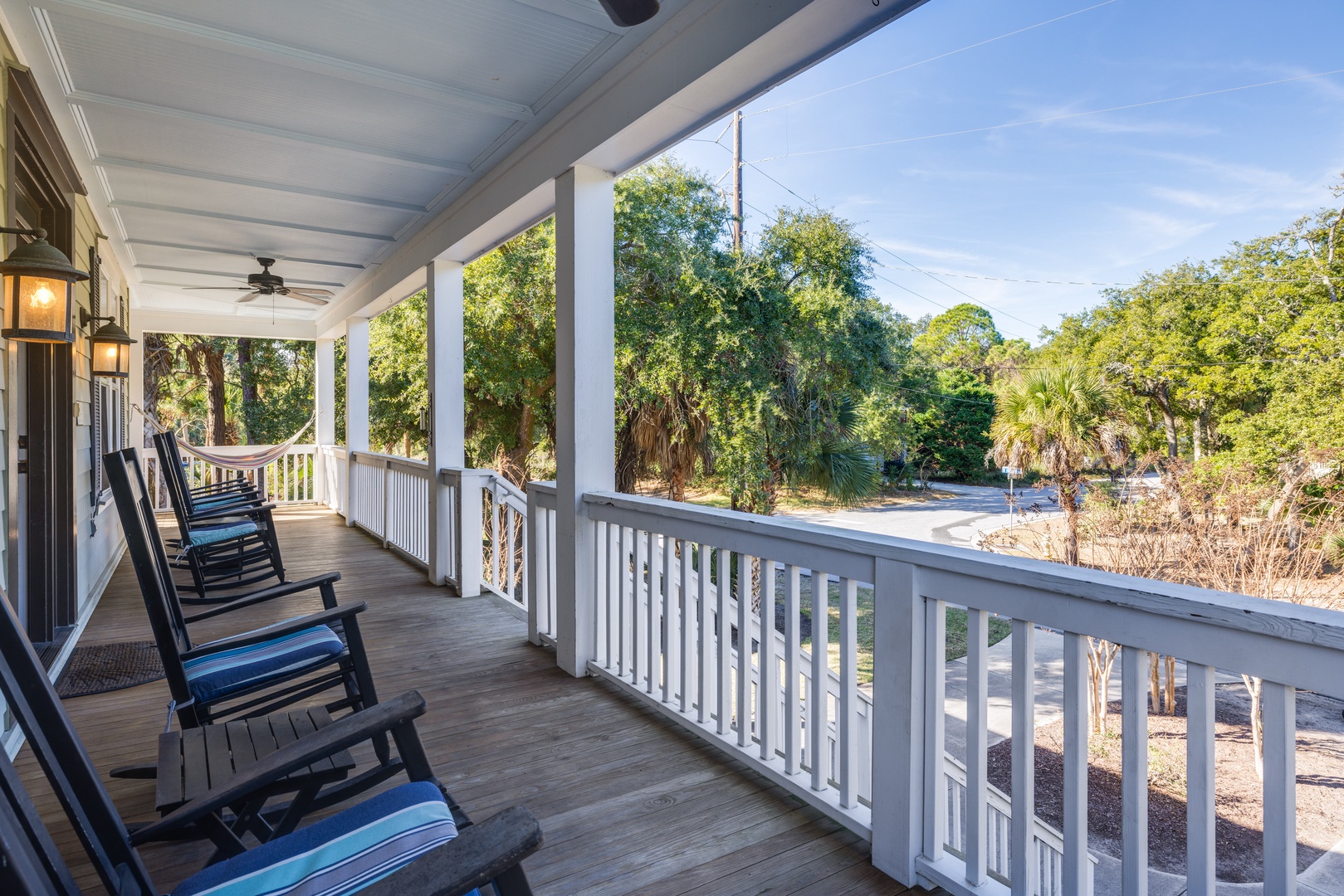 Large front and side porches with hardwood rockers and a hammock, perfect for relaxing in the ocean breeze.
