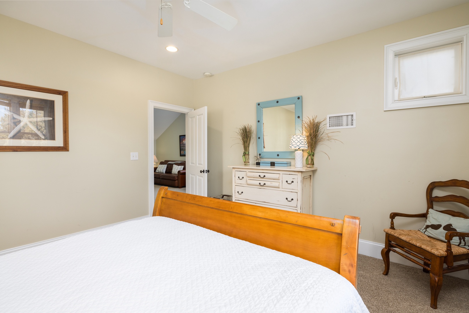 Second Bedroom (Upstairs): Queen bed, sharing a "Jack and Jill" bathroom with the third bedroom. Includes a bonus room with two twin beds.