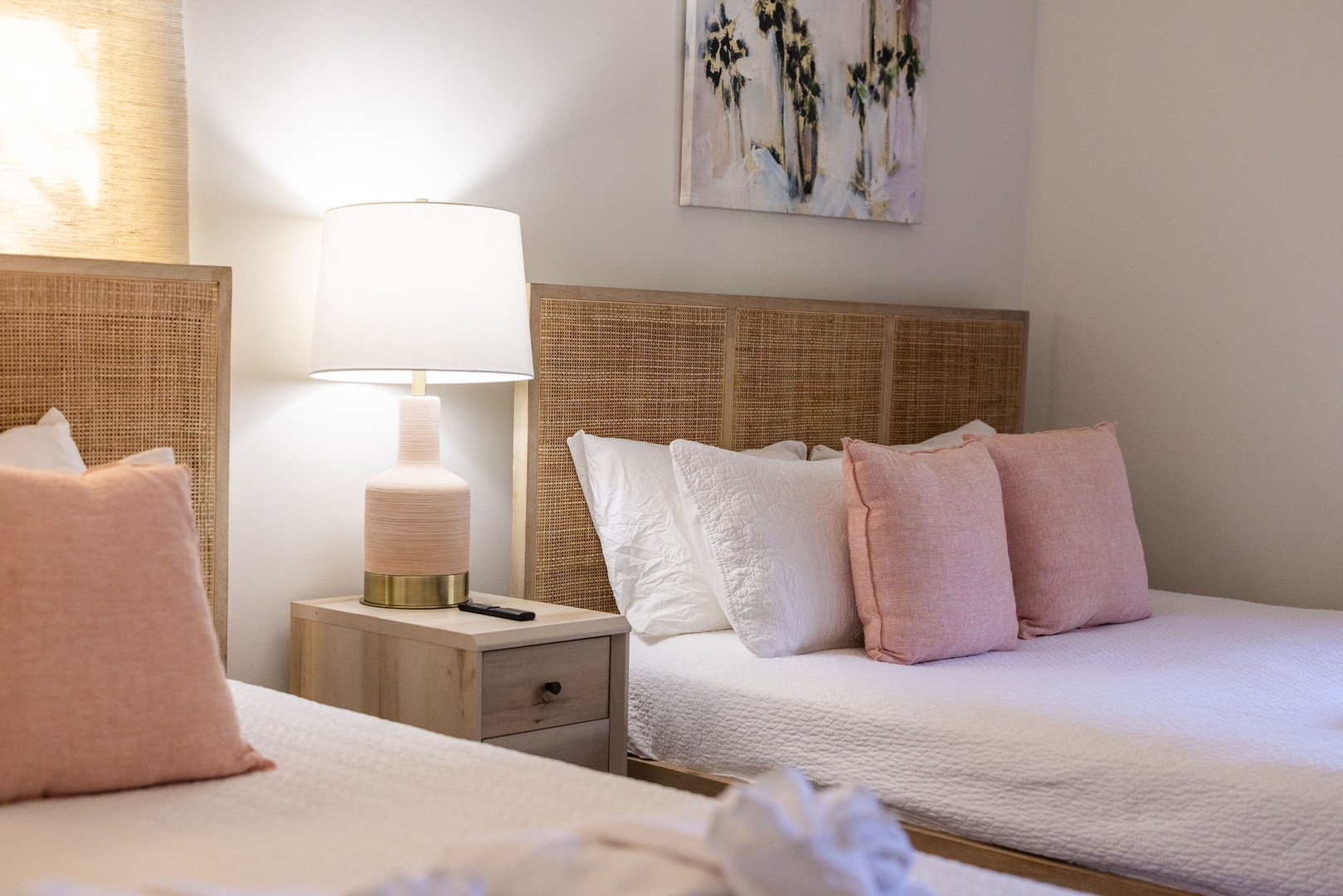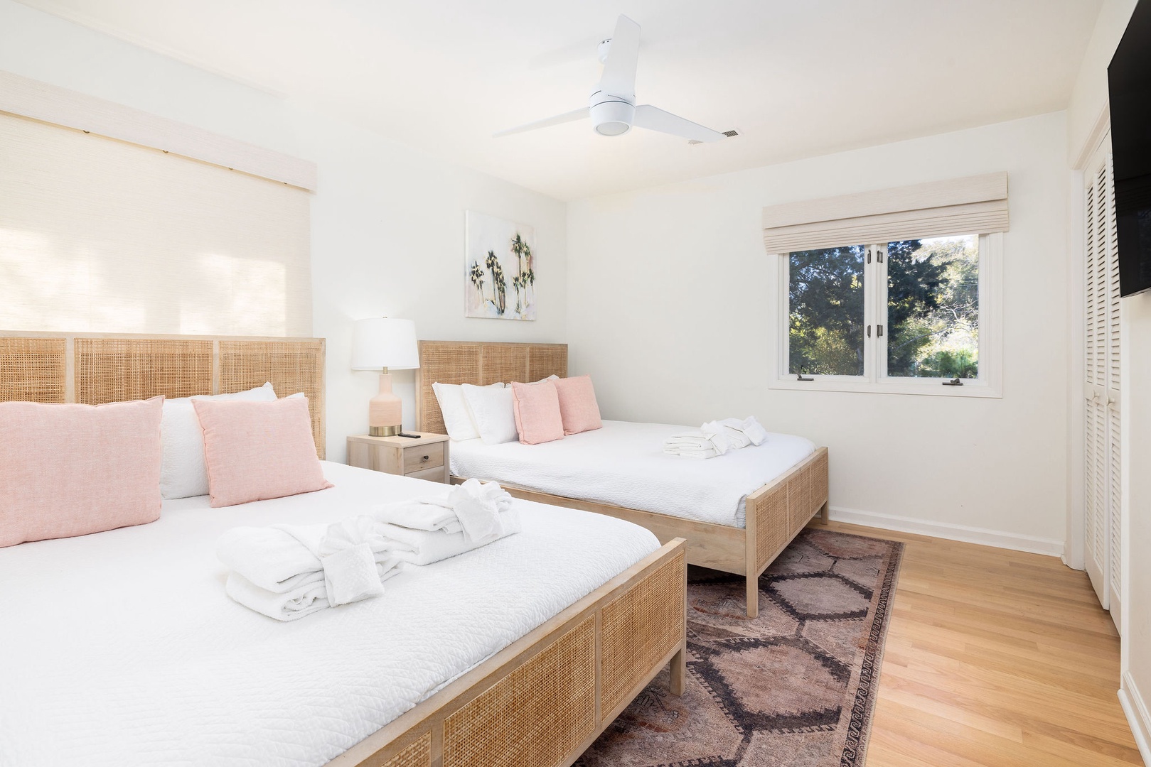 Bedroom 3: Two queen beds with access to a shared hallway bathroom.