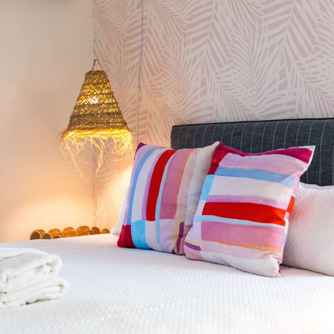 Bedroom 2: King bed with access to a shared hallway bathroom.