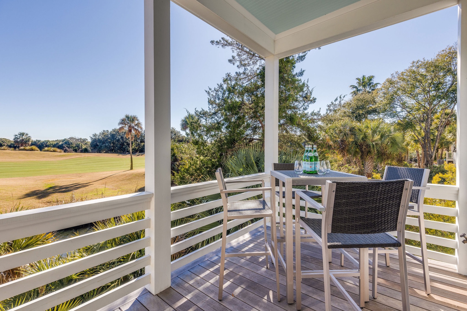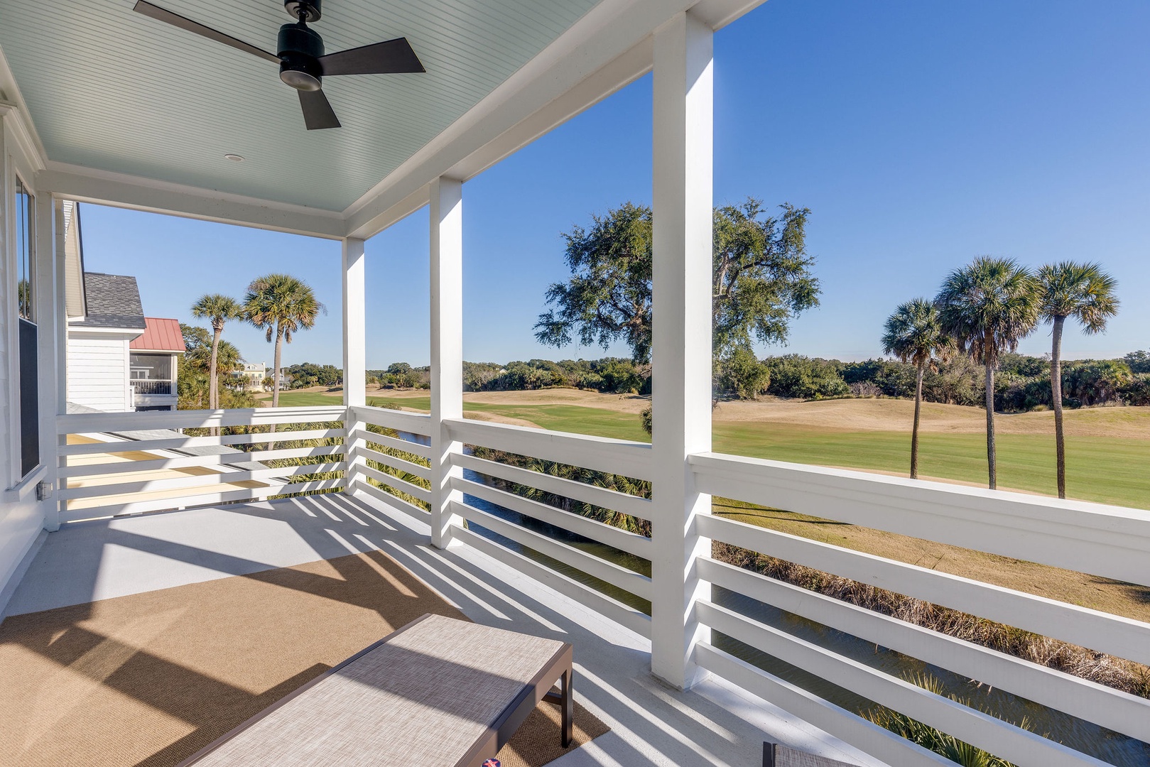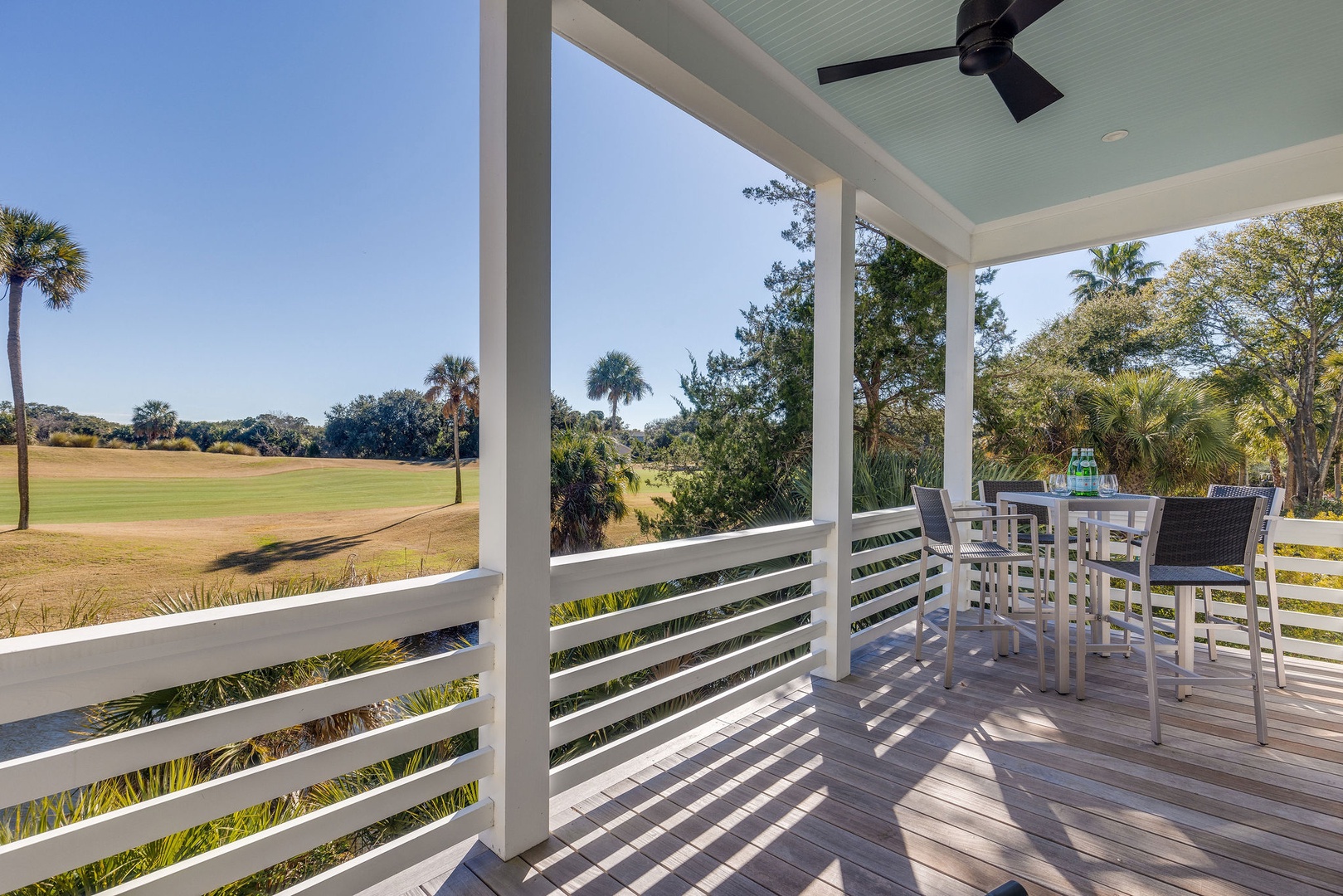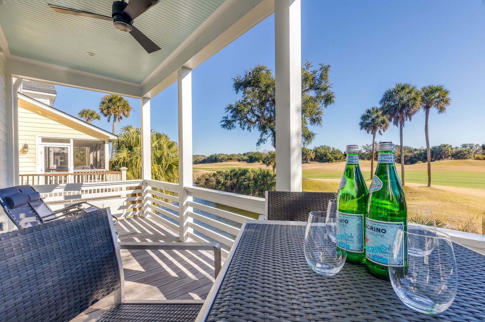 Large porch overlooking the 14th hole of the Harbor Golf Course and lagoon.