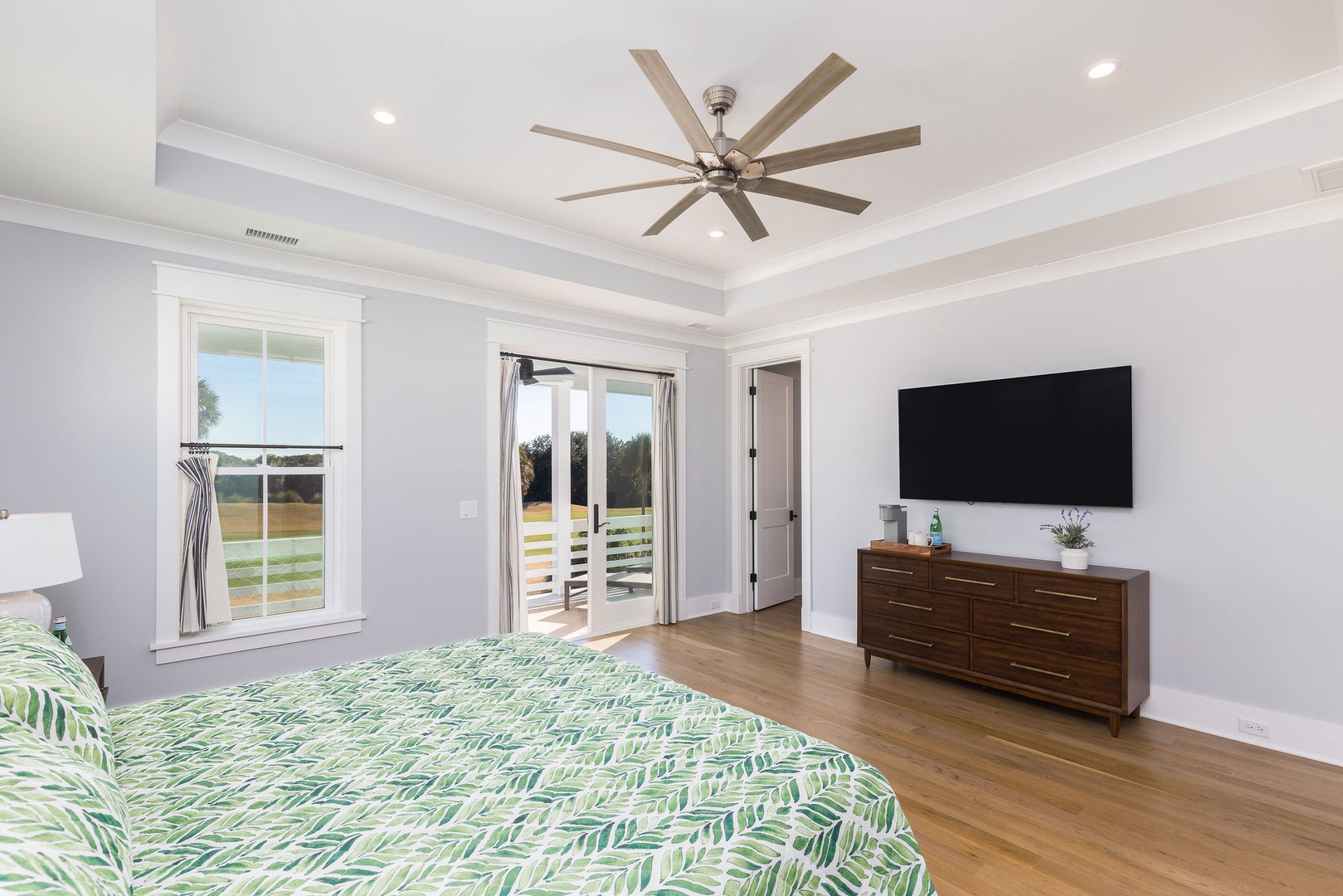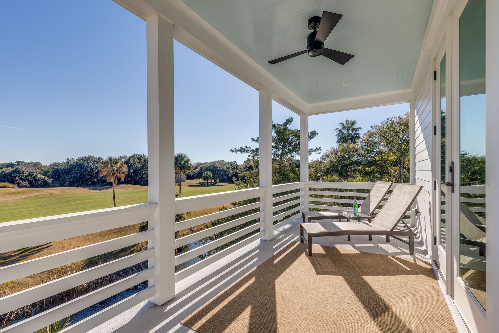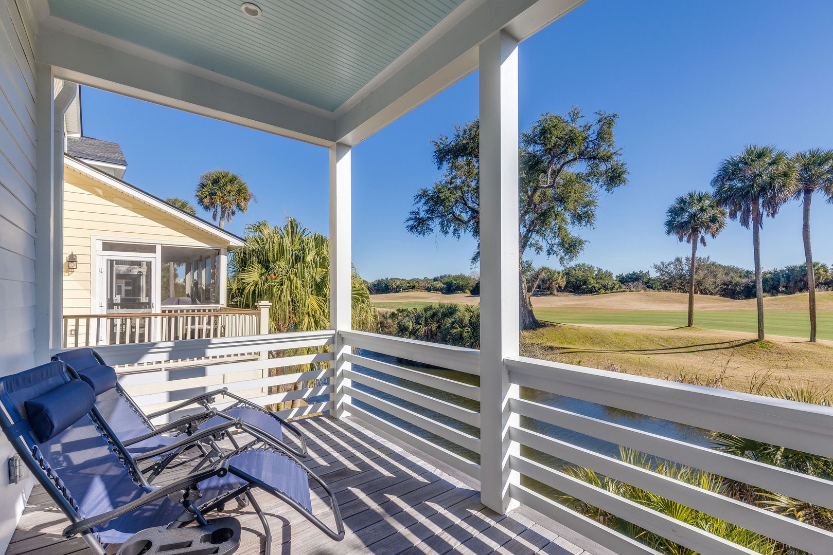 Breathe in the coastal air and overlook the greens from your spacious second story balcony retreat.
